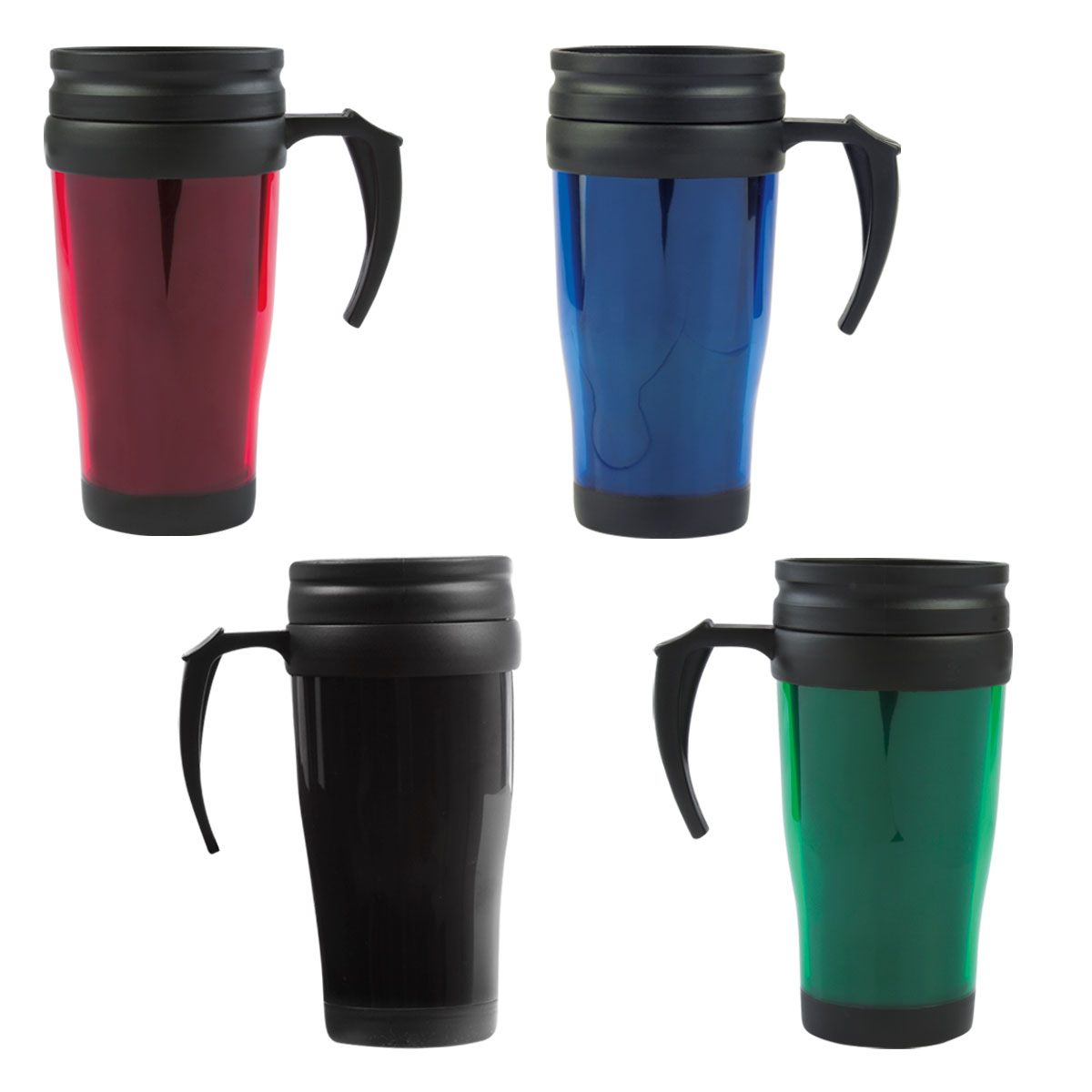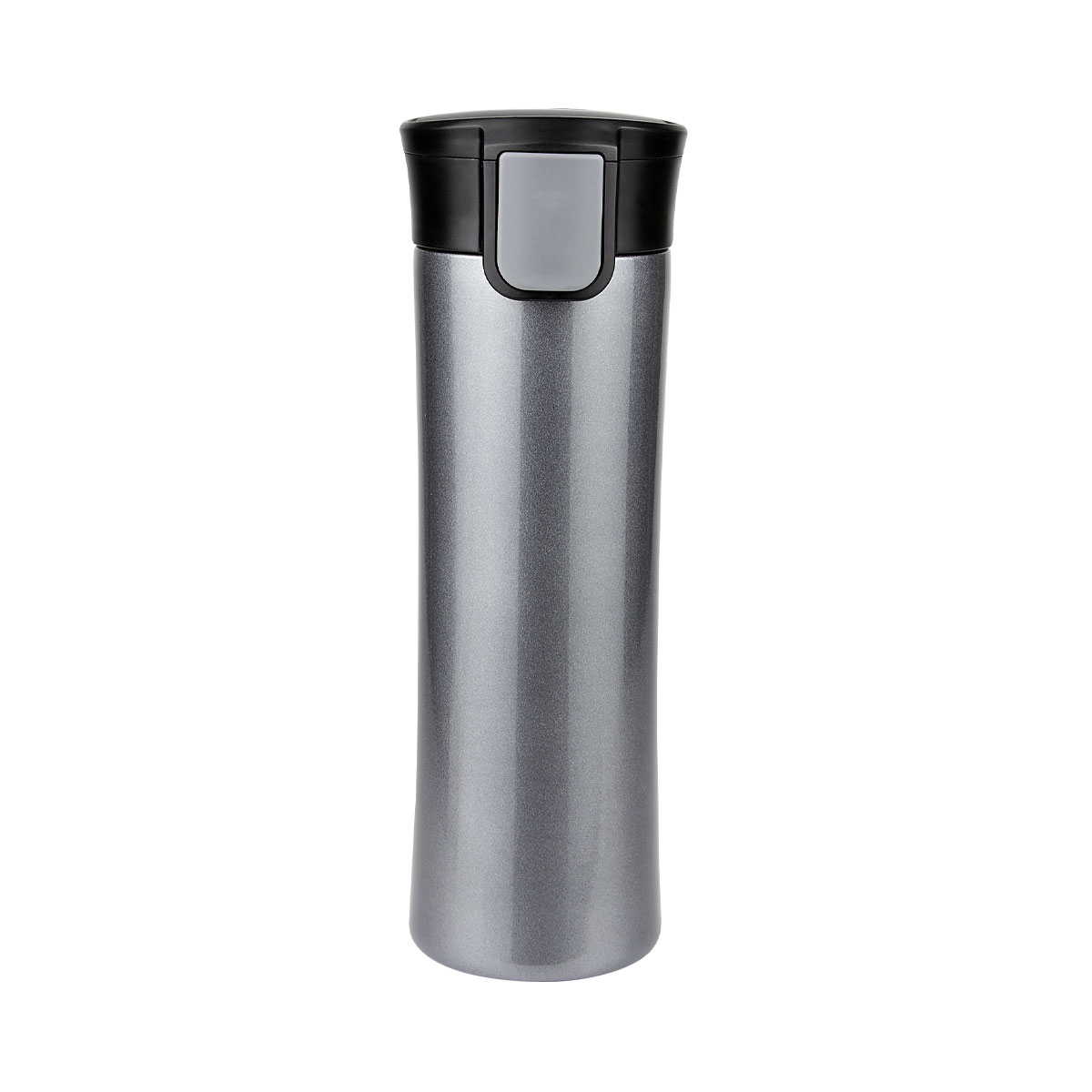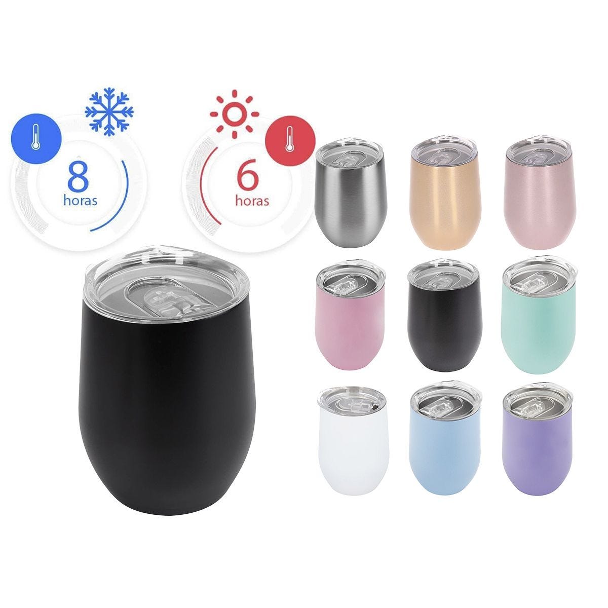 Termo con doble pared de acero inoxidable y acabado rubber. Incluye tapa transparente de cierre a presión.