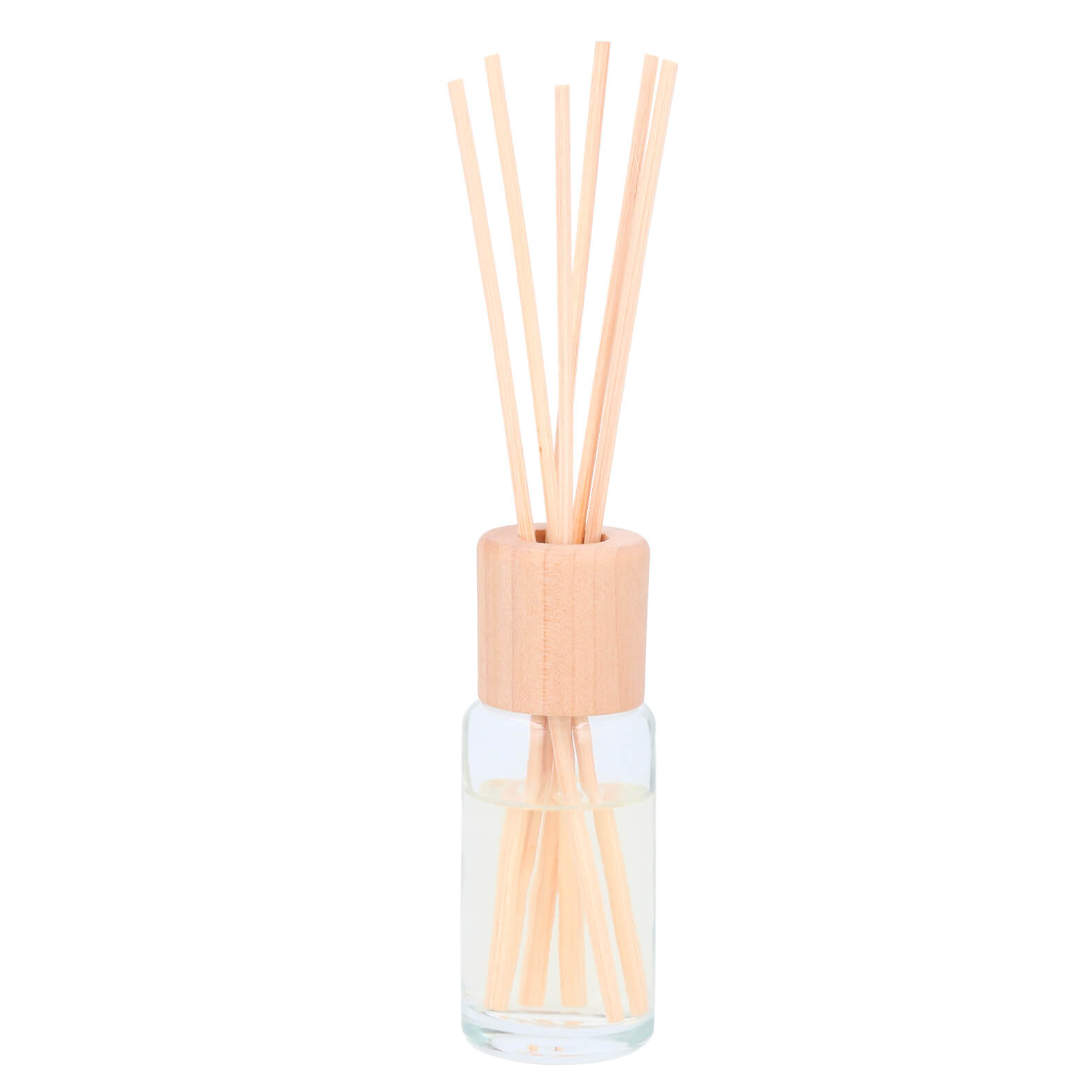 Difusor de aromas con envase de vidrio, tapón antiderrames de plástico y tapa con 6 varitas de madera. (Aroma lemon grass)