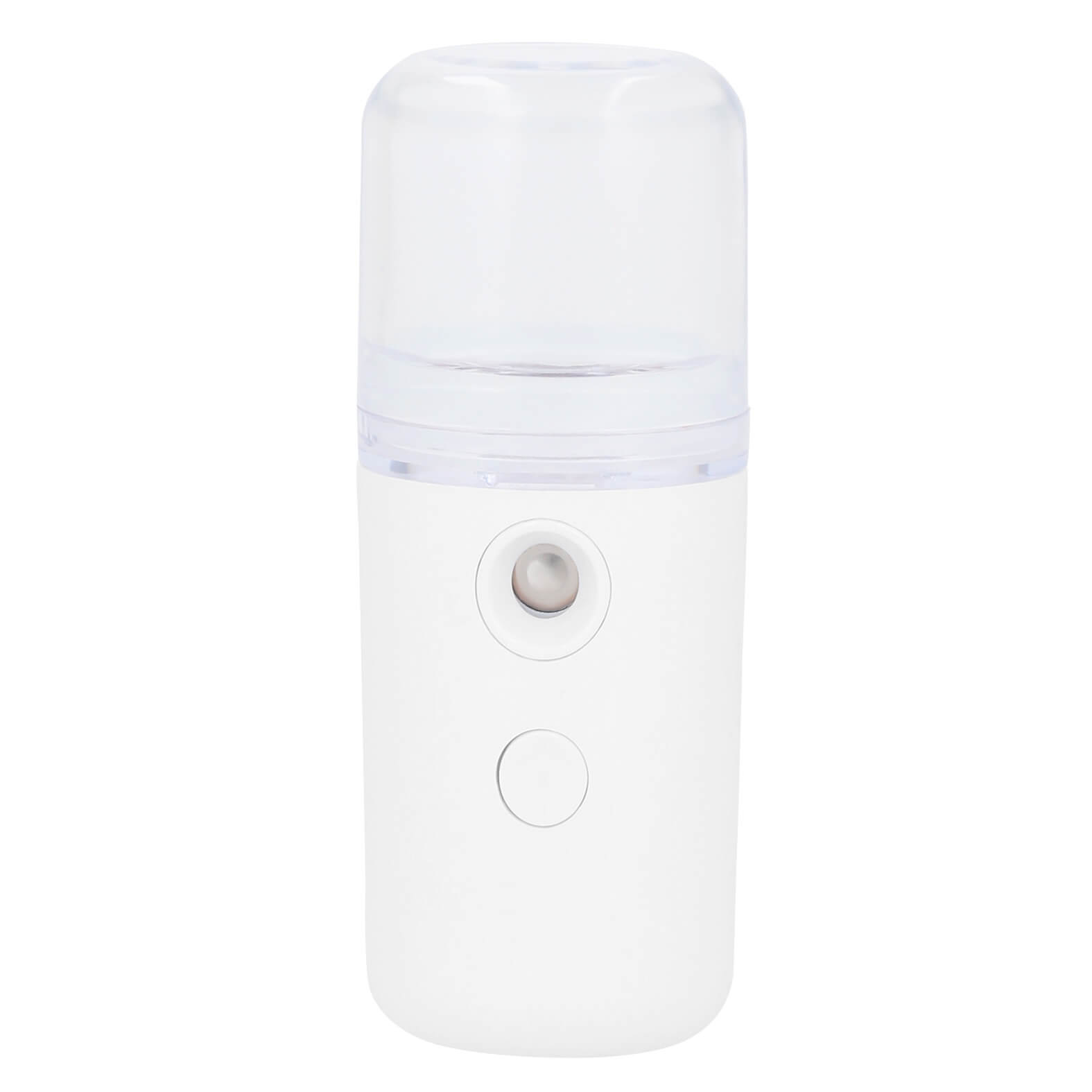 Humidificador portátil de plástico traslúcido y botón de encendido, con luz interna. Incluye cable de carga. (no incluye líquido).