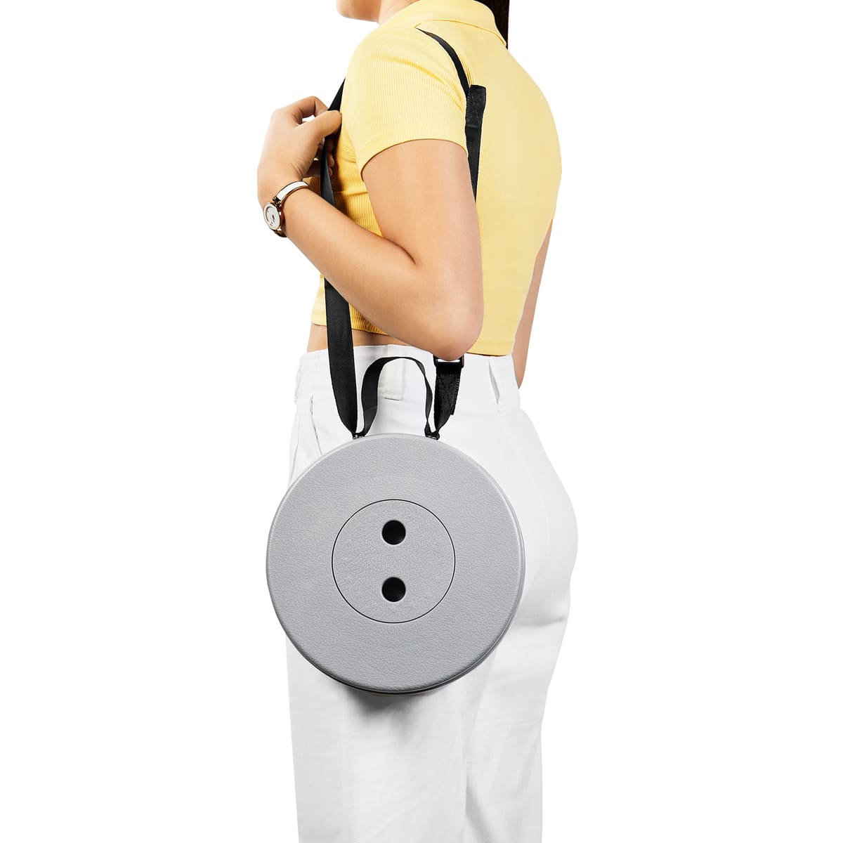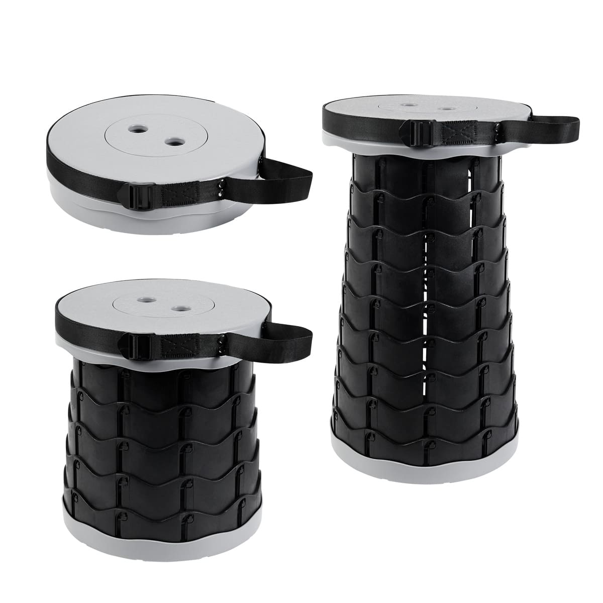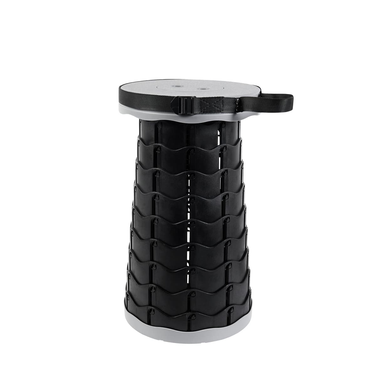 Banco plegable portatil. Sistema de agarre que lo hace estable y facil de plegar o guardar. Gira y extiende a la altura ajustable que deseas, hasta 45 cm. Capacidad de carga de 120 kg. Incluye asa de hombro ajustable para llevarlo a todas partes.