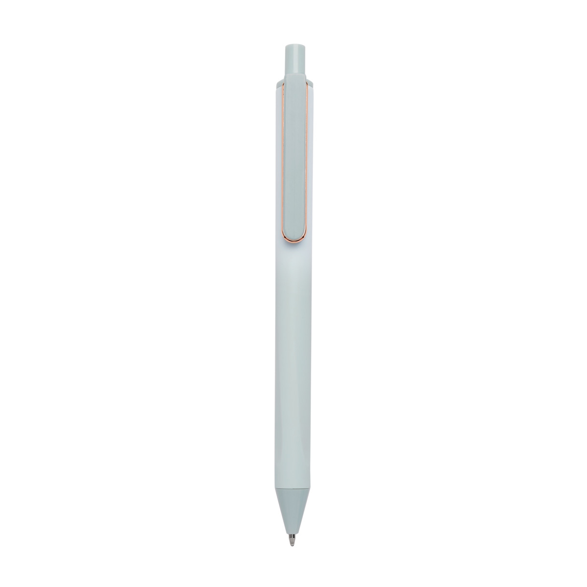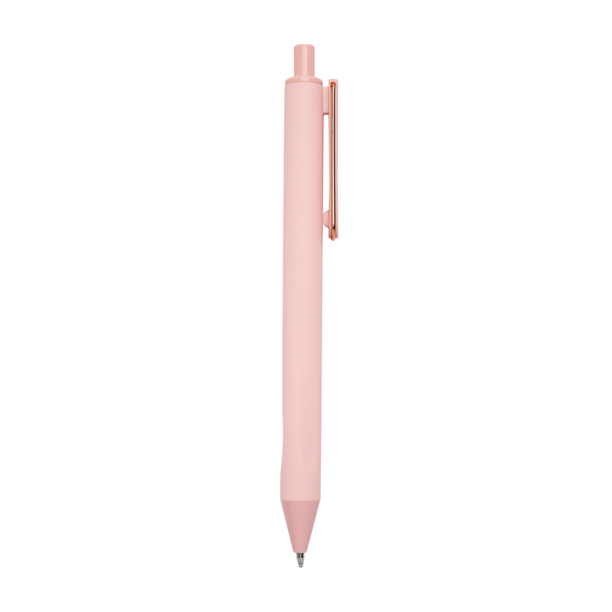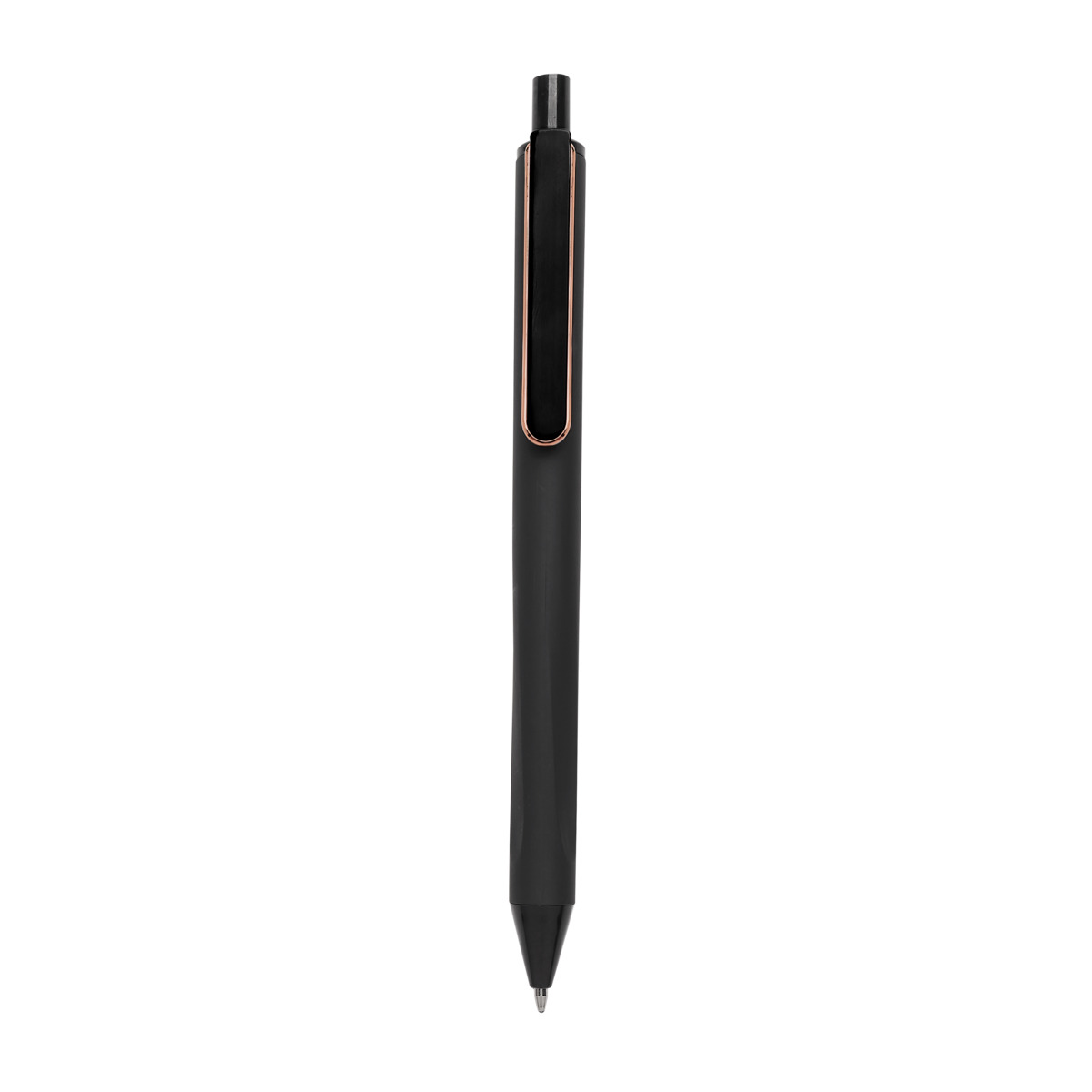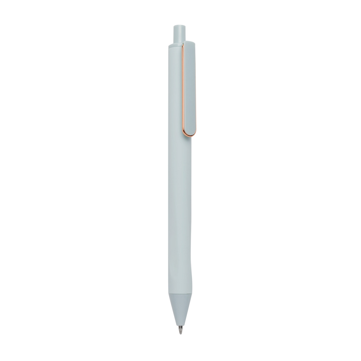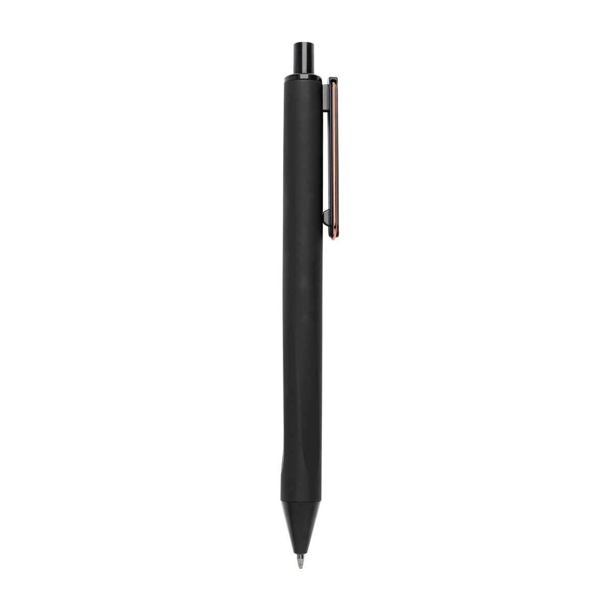 Boligrafo con terminado tipo rubber. Mecanismo pulsador. Su diseno inferior permite un mejor agarre.