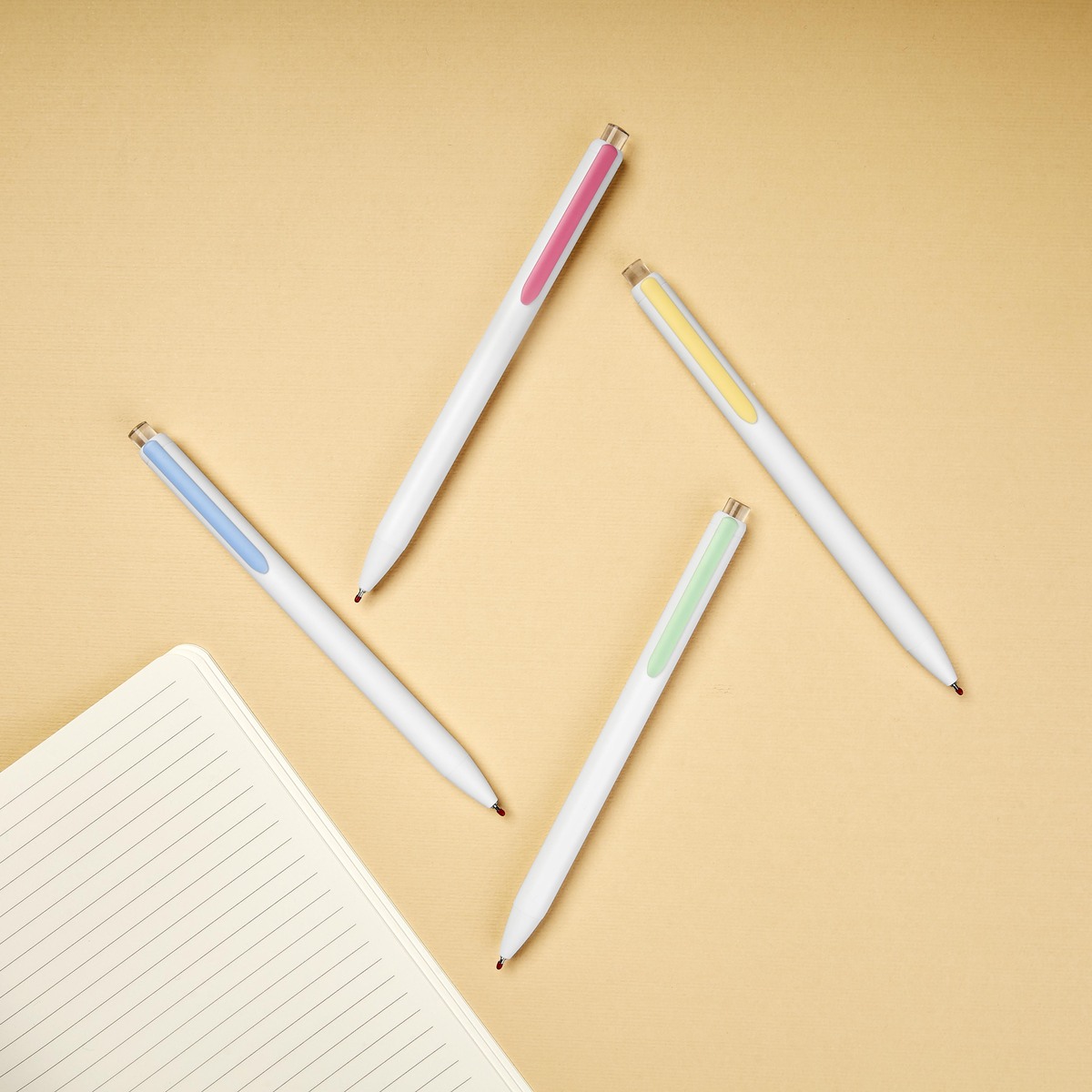 Boligrafo con tinta semigel. Clip simulado que anade un toque de color moderno. Mecanismo pulsador.