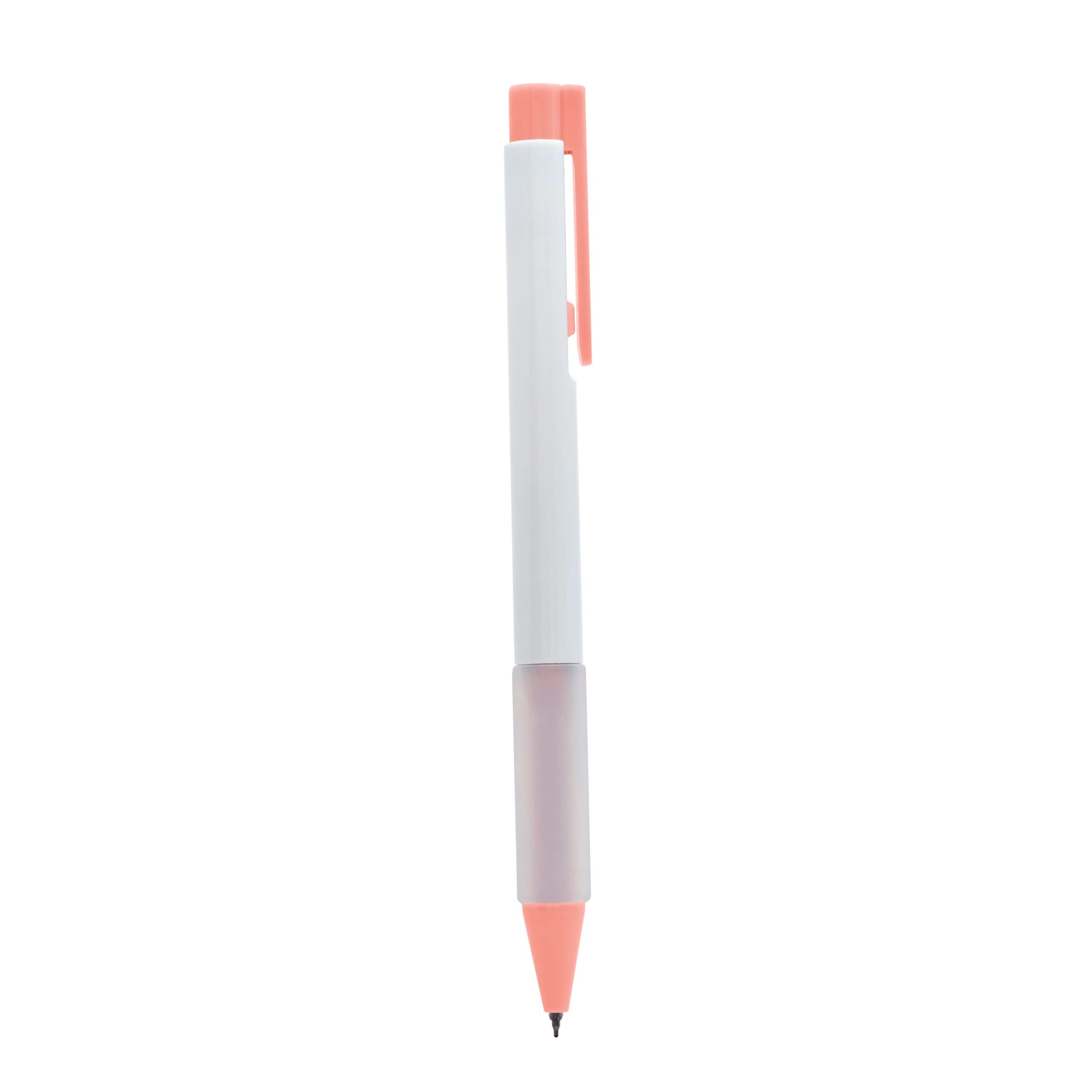 Boligrafo de tinta de gel con grip de silicon antiderrapante. Mecanismo pulsador.