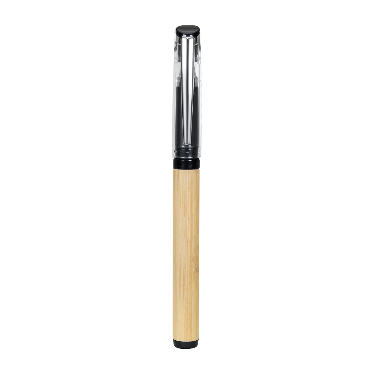 Boligrafo de bambu con tapon. Grip antiderrapante. Tinta gel. Incluye funda.
