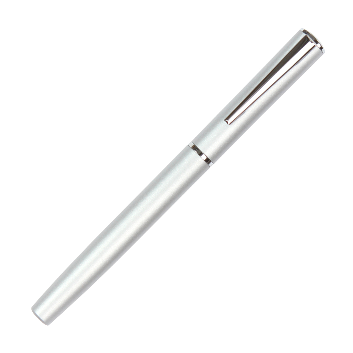 Bolígrafo fabricado en aluminio. Incluye tapa y clip metálico. Tinta de escritura azul.