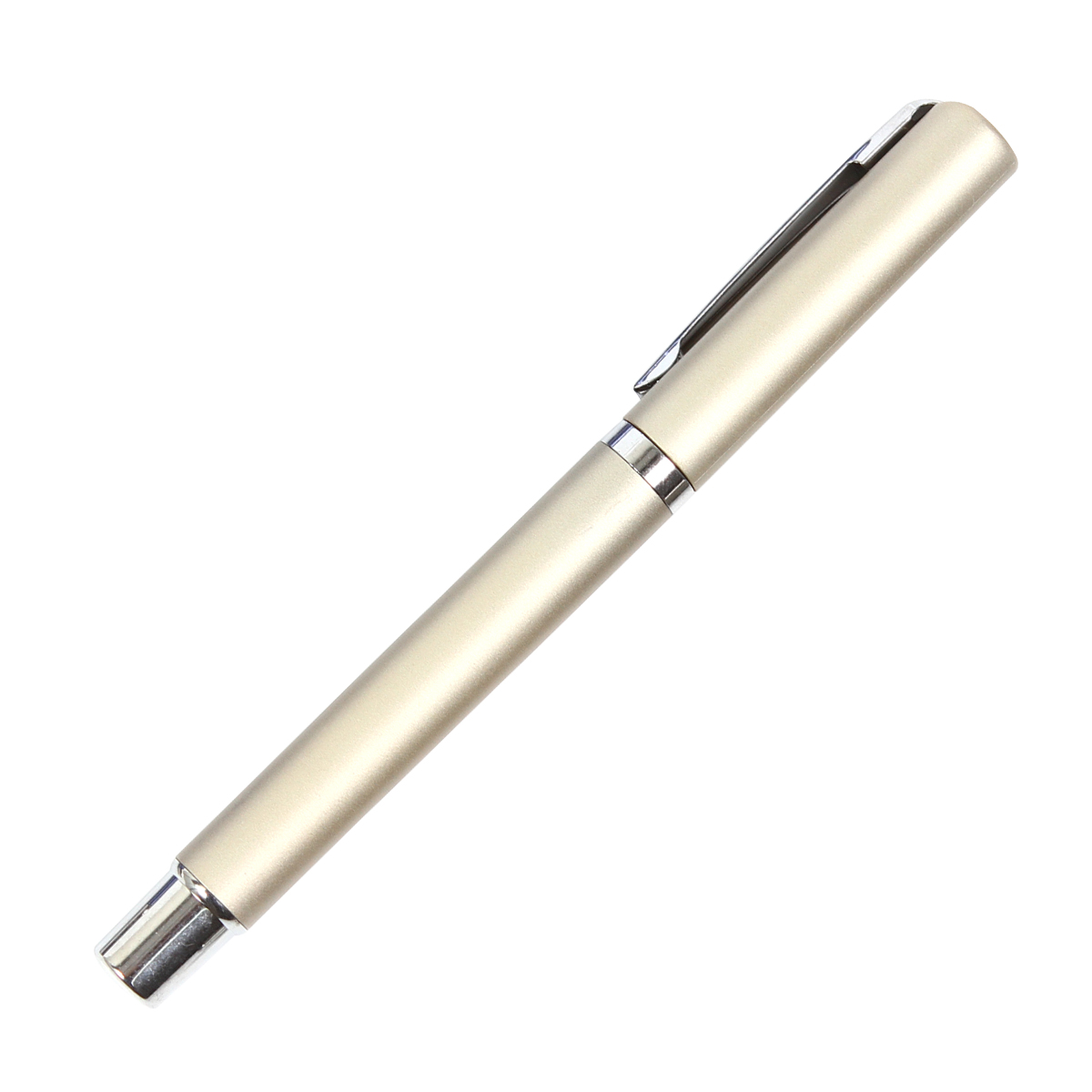 Bolígrafo de plástico con acción cap off, cilindro y tapa pulverizados mate, clip, punta y tapón cromados, recambio delgado X-20. Barril fabricado en ABS. Tinta de escritura azul de gel.