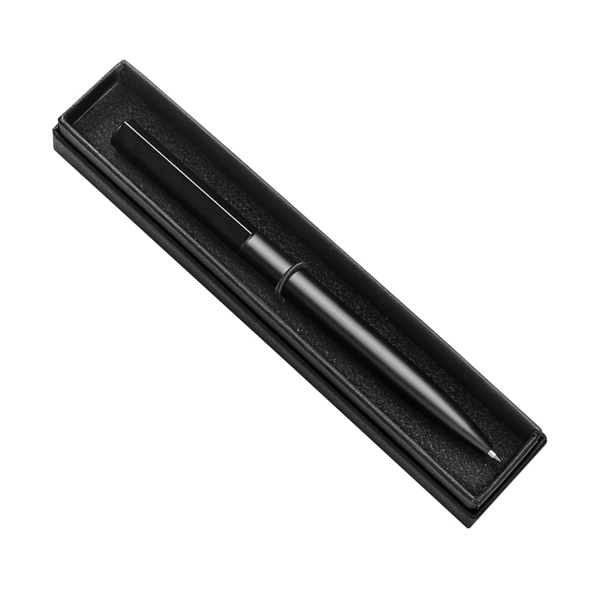 Boligrafo con terminado mate. Mecanismo twist. Diseno estilizado sin clip. Incluye estuche.