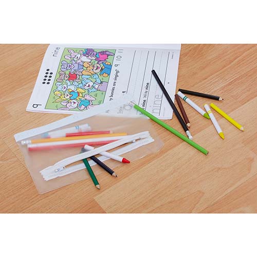 Bolsa porta lapices con cierre. No incluye colores.