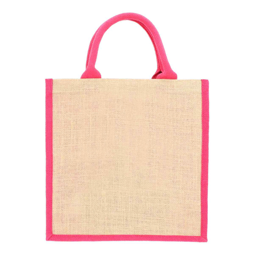 Bolsa con fuelle y asas redondeadas. Interior plastificado. El yute es un producto natural el cual puede presentar variaciones en tonalidades y en la urdimbre y trama de la tela.
