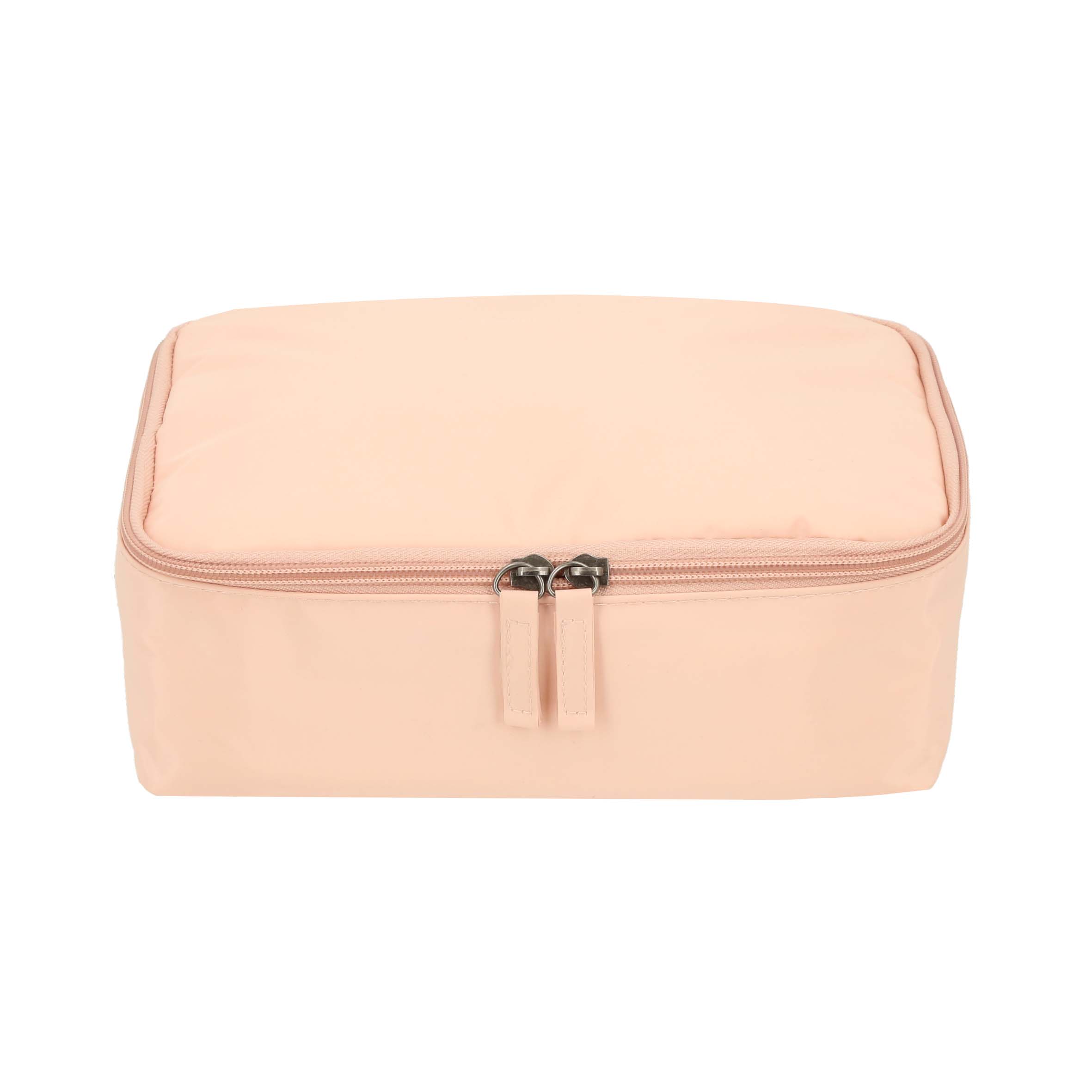 Cosmetiquera con interior forrado, en la parte superior cuenta con 6 espacios ideales para brochas y en la parte inferior 4 separadores ajustables.