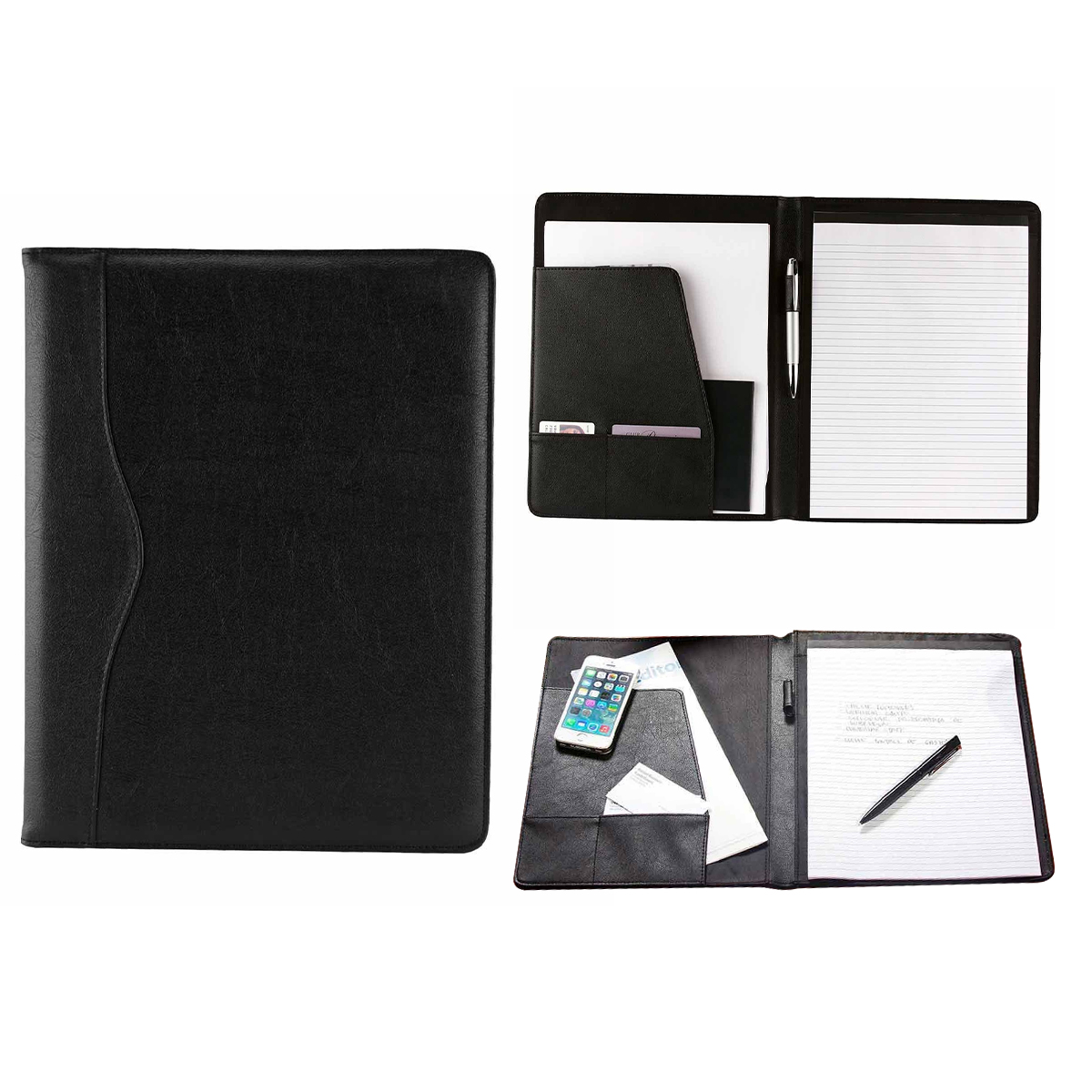 Incluye block de raya tamano A4 con 20 hojas, compartimento para boligrafo, documentos y tarjetas. No incluye boligrafo.