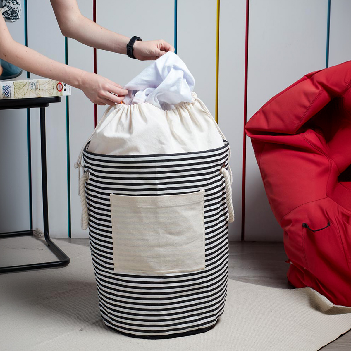 Bolsa principal con jareta y bolsa frontal. Interior laminado. Incluye asas de mano laterales.