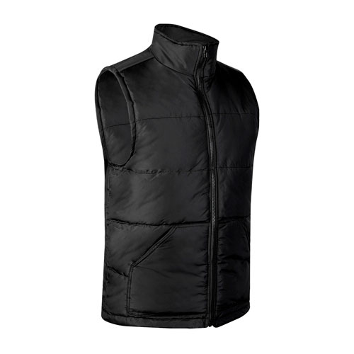Chaleco repelente de agua. Exterior 100% popelina poliester. Relleno 100% poliester. Doble bolsa frontal y una bolsa interior.
