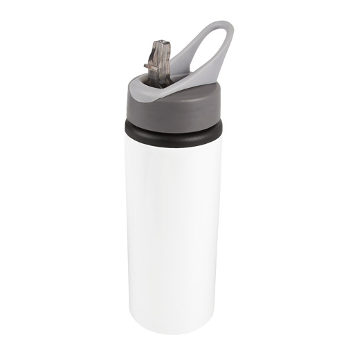 Cilindro para sublimar de aluminio de una pared. Tapa de plastico con cierre de rosca, asa y popote. Incluye caja individual.