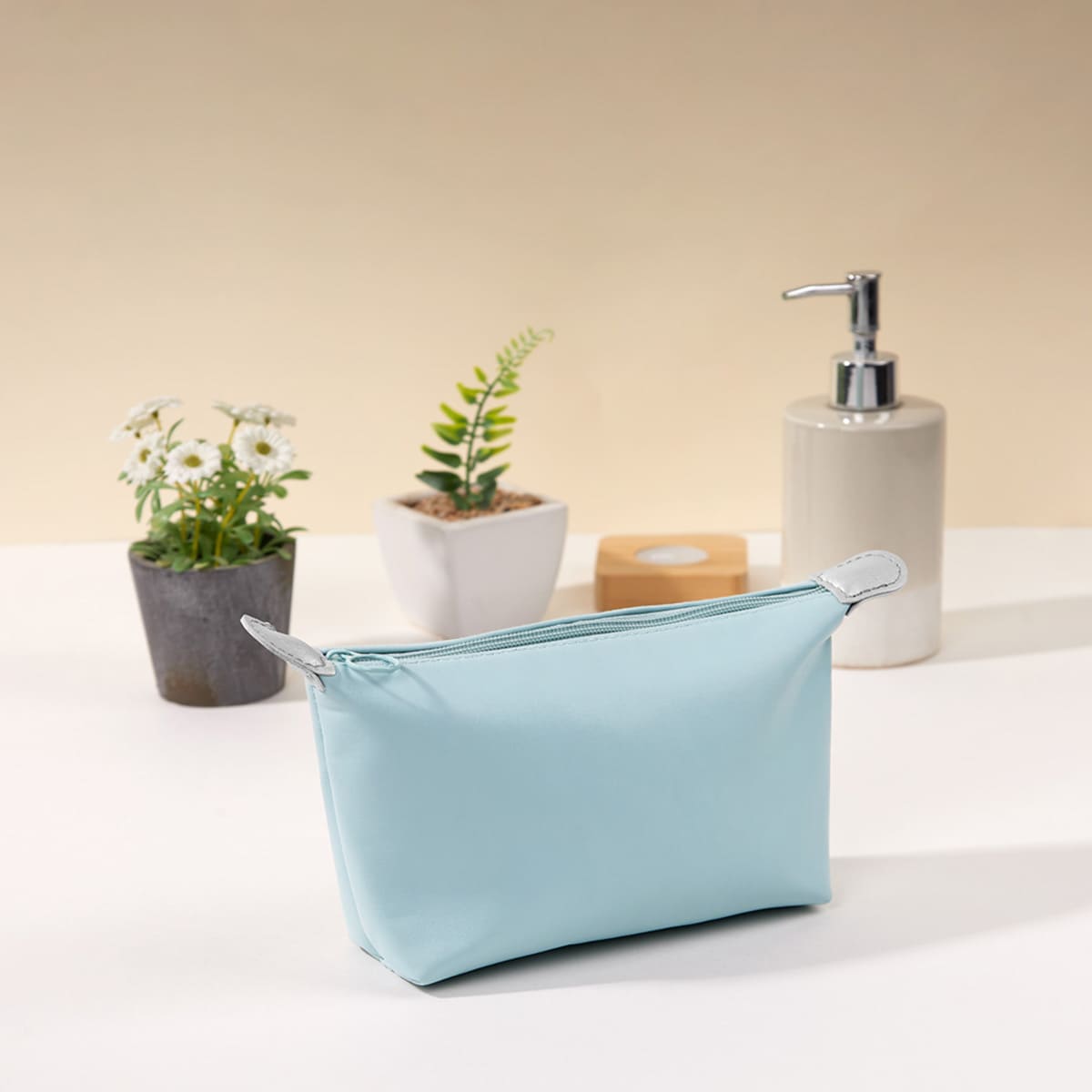 Cosmetiquera con cierre y forro interno. Hecho con materiales suaves y resistentes. Guarda tus accesorios de viaje y maquillaje de forma segura.
