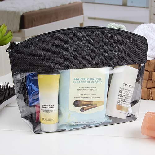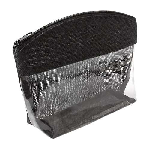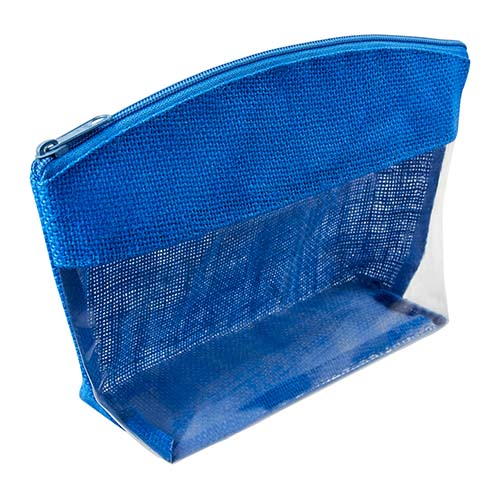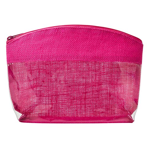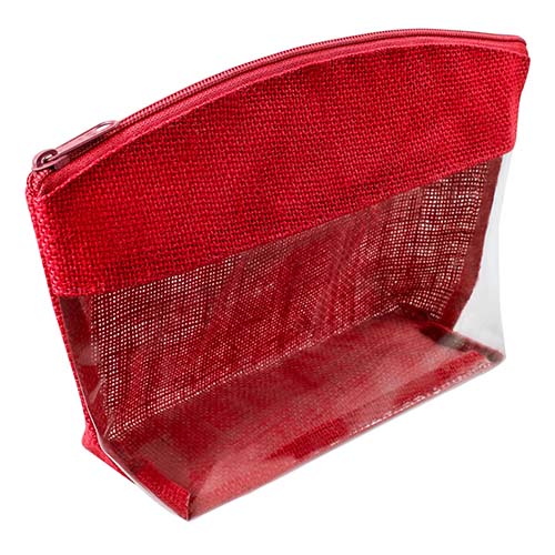 Cosmetiquera transparente con yute de color y cierre. El yute es un producto natural el cual puede presentar variaciones en tonalidades y en la urdimbre y trama de la tela.