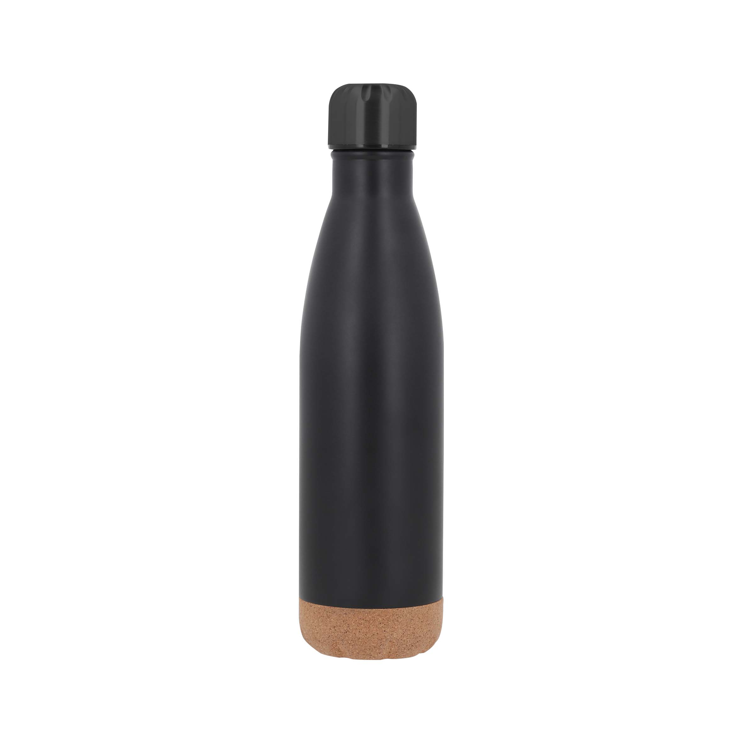 Termo insulado al vacío con doble pared de acero inoxidable, base de corcho y tapa enroscable.