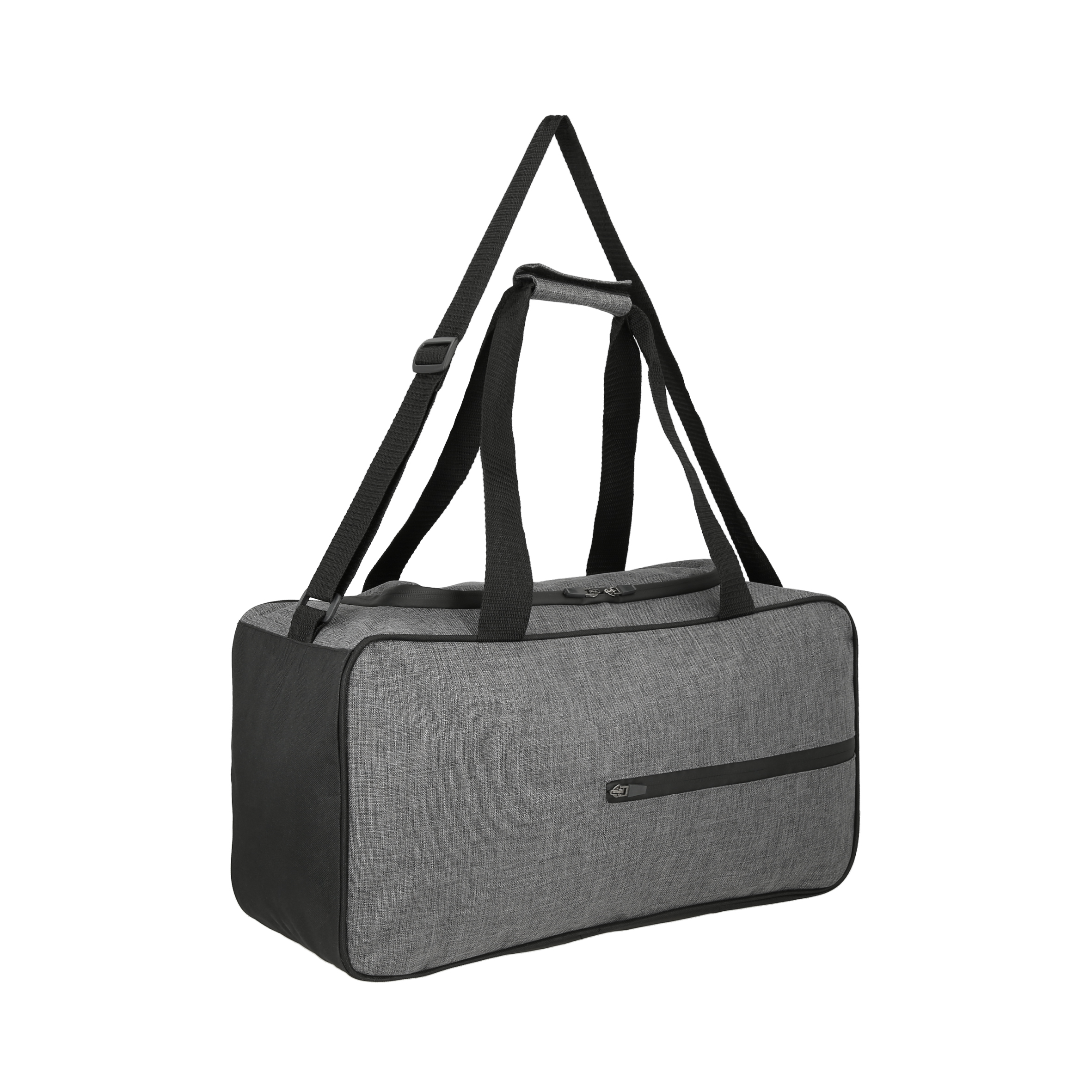 Maleta de 2 compartimentos, doble cierre, doble asa y correa ajustable.