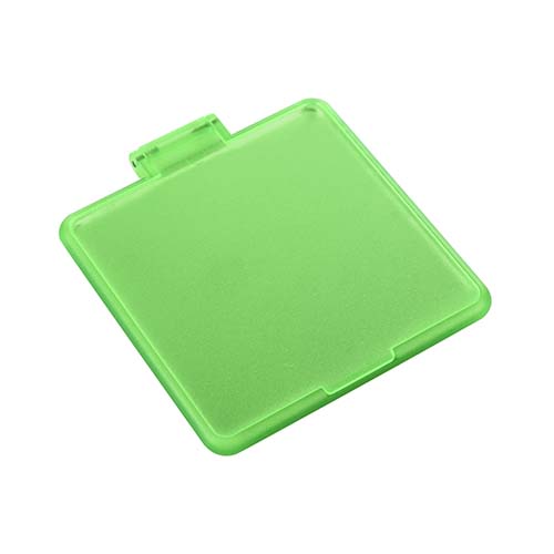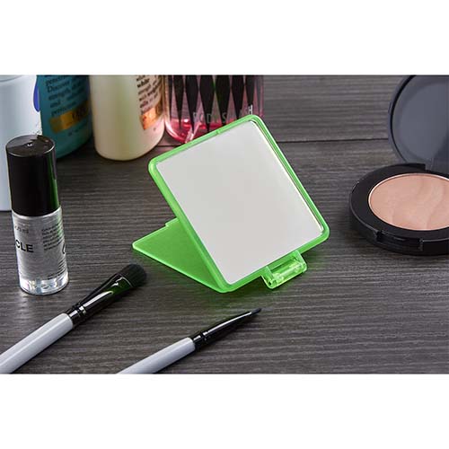 Espejo cuadrado de bolsillo. La tapa sirve como base.