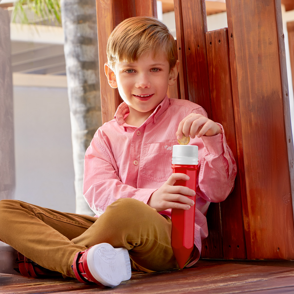 Estuche porta lapices doble. Cuenta con ranura para monedas en la tapa para funcion de alcancia.