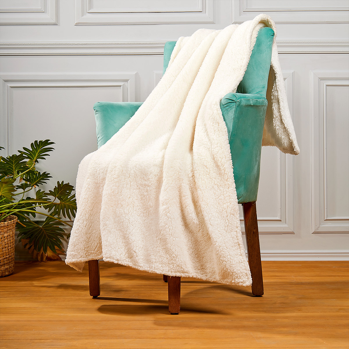 Frazada con textura tipo borrego. Acogedora y comoda, la cual proporciona una sensacion calida y suave al tacto.