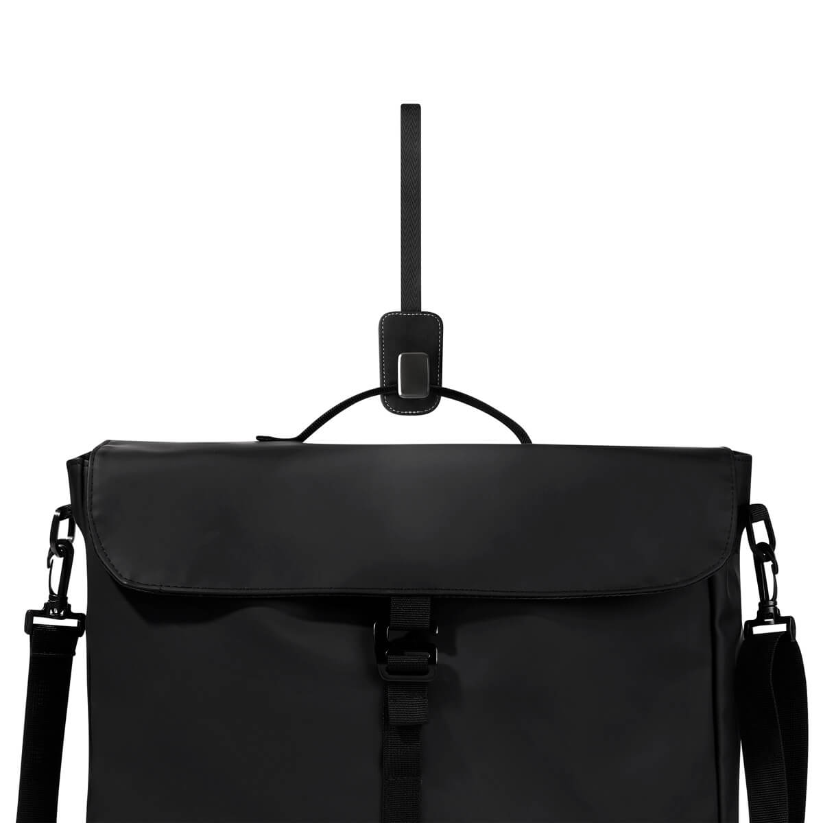 Gancho de metal perfecto para colgar bolsas, mochilas o accesorios. Su asa de poliester permite montarlo y desmontarlo facilmente, adaptandose al respaldo de cualquier asiento de coche. Incluye caja individual.