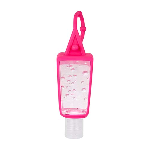 Gel sanitizante portatil y recargable. Incluye sujetador de silicon. Alcohol al 55%.