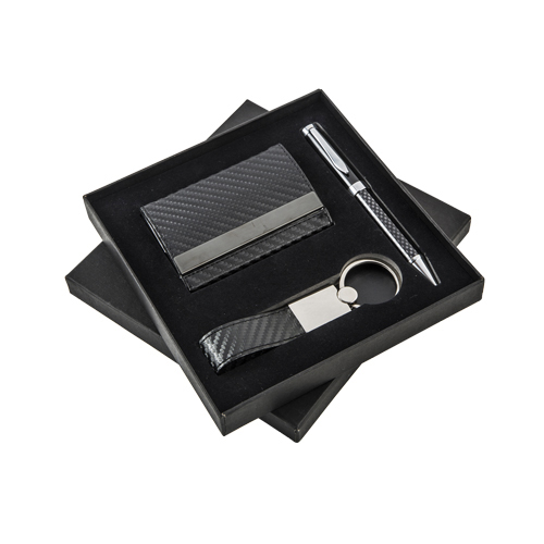 Set ejecutivo: Incluye llavero metálico, tarjetero, bolígrafo y estuche de regalo.