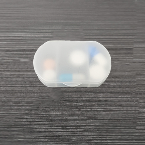 Pastillero de plástico con tres compartimentos.