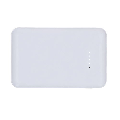 Batería portátil de plástico wireless con ventosas para sujetar el teléfono con botón de encendido y apagado, 2 puertos de salida USB, entrada micro USB e indicador de carga.