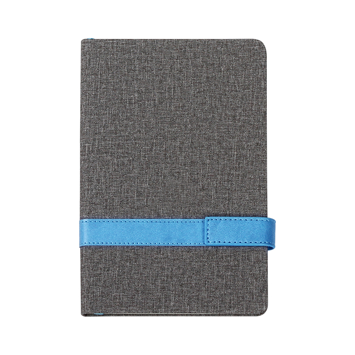Libreta fabricada en tela, con broche de color en curpiel . Cuenta con separador de hojas el cual va a juego con el broche para cerrar , 80 hojas de raya. Tamaño A5.