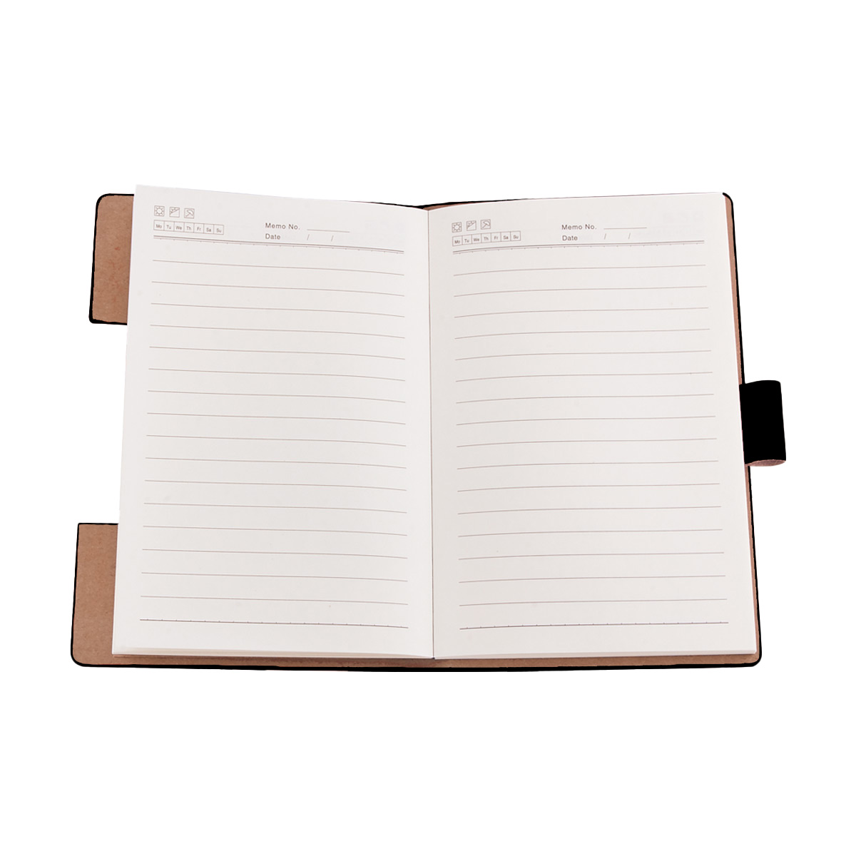Libreta con 70 hojas de raya. Incluye boligrafo y notas adheribles de colores.