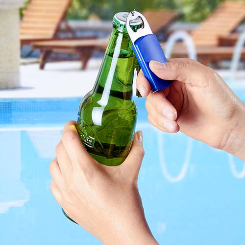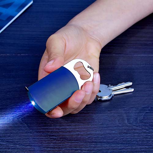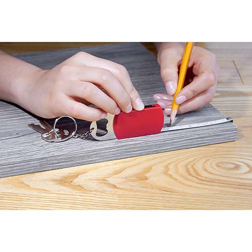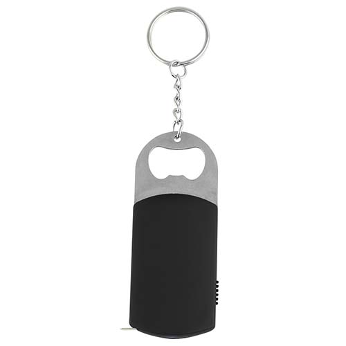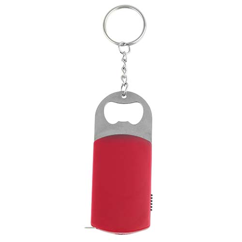 Llavero destapador con lampara de 1 LED y flexometro de cinta metalica de 1 m.