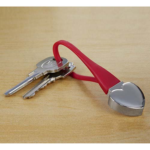 Llavero metalico en forma de corazon. Incluye caja individual.