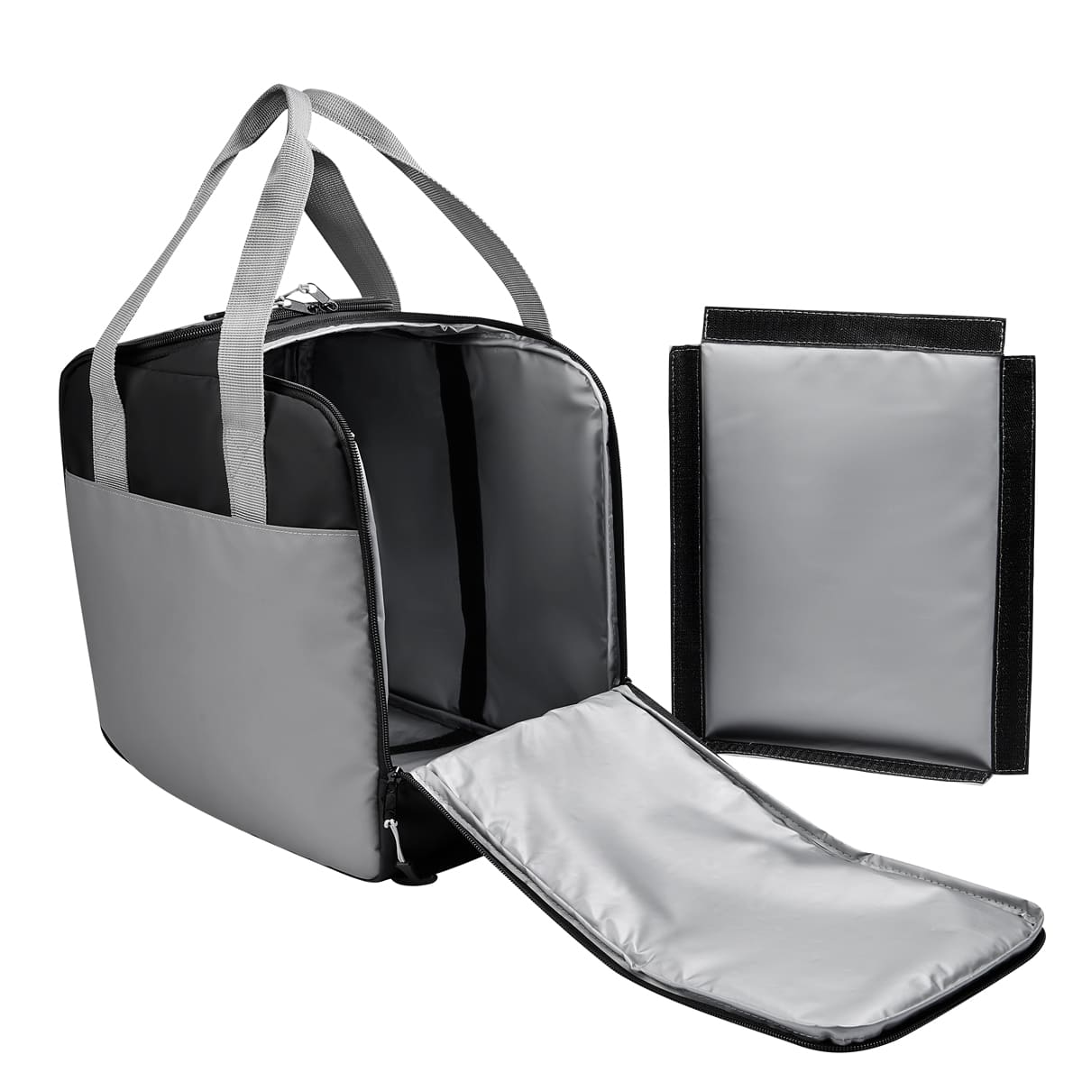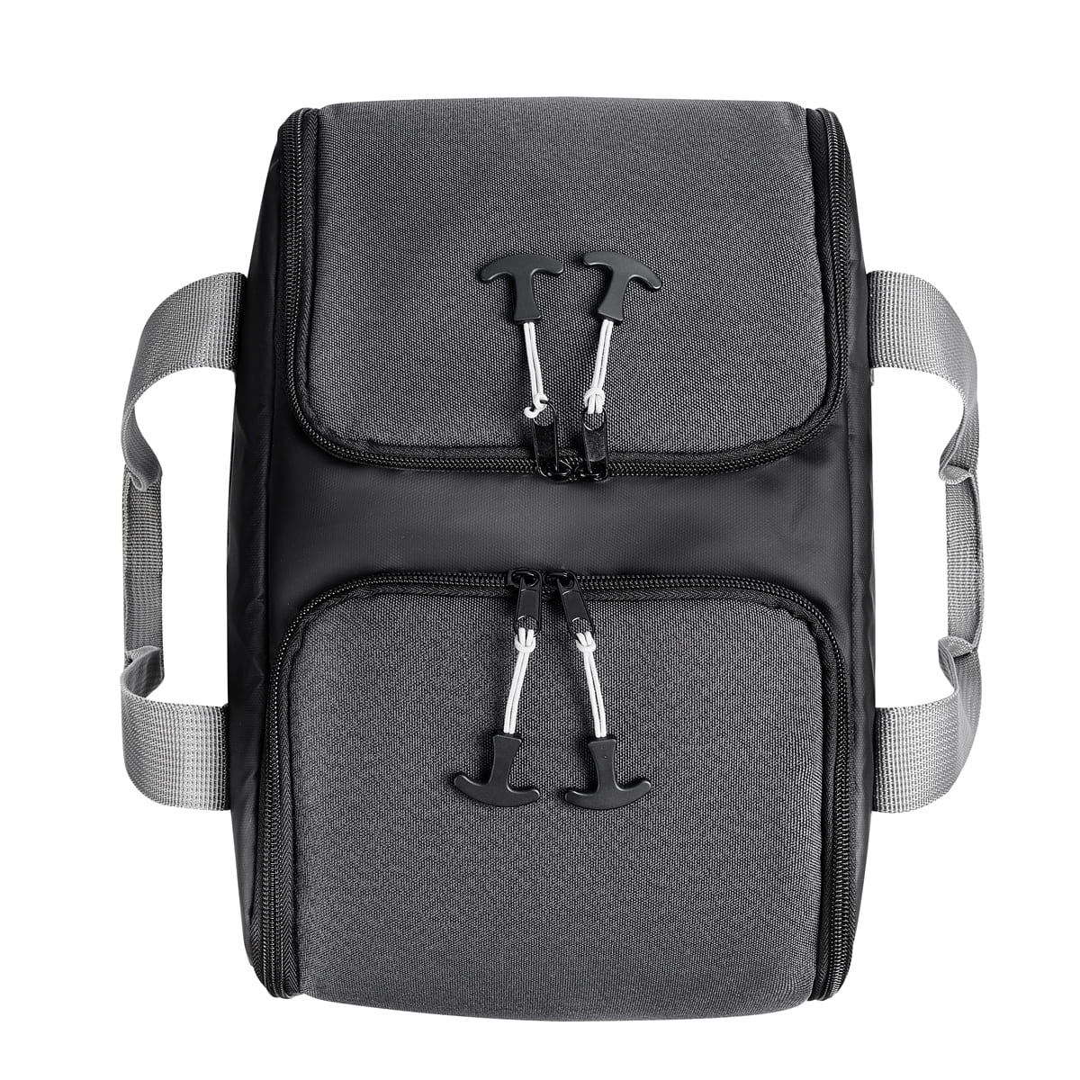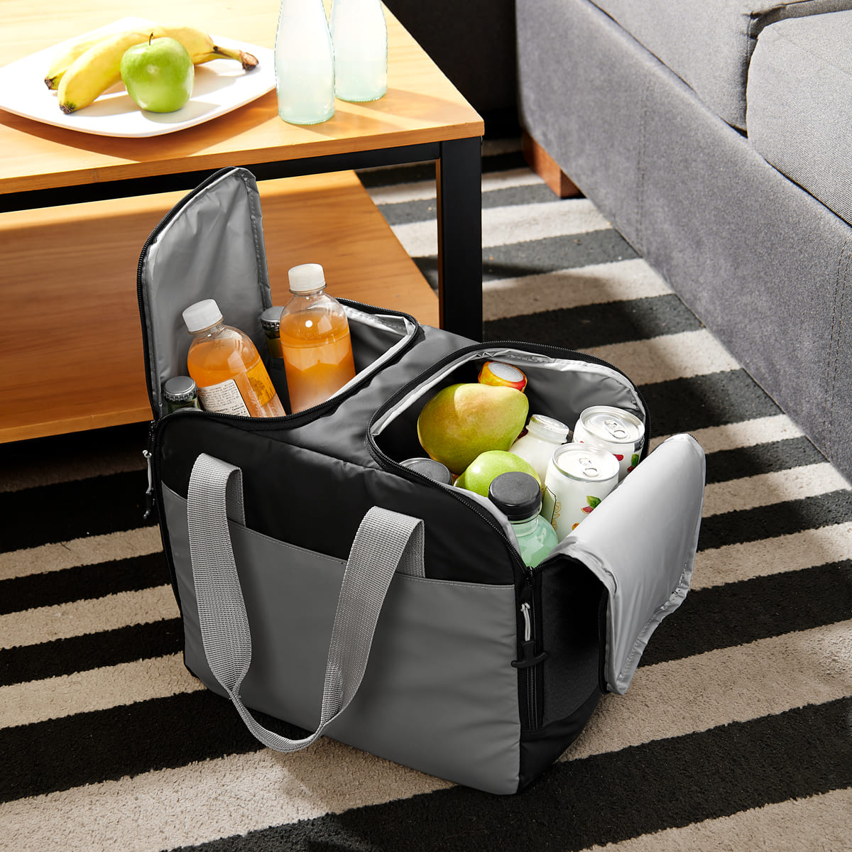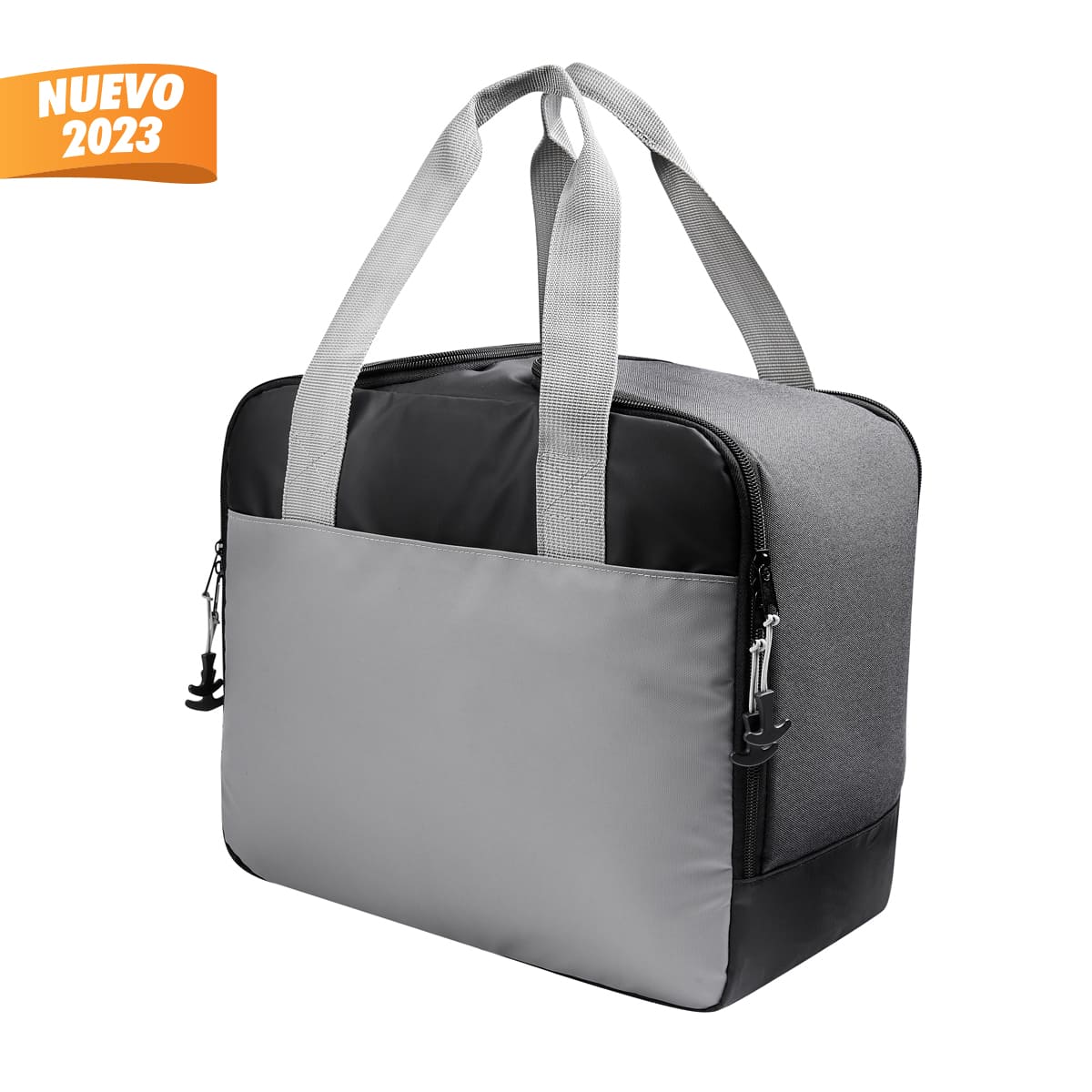 Lonchera con interior plastificado. Su compartimento principal incluye dos cierres independientes y un separador interno que permite utilizar cada espacio por separado. Incluye broches de velcro que permite retirarlo facilmente y obtener asi mayor espacio. Bolsa frontal con cierre de velcro y asas de mano.