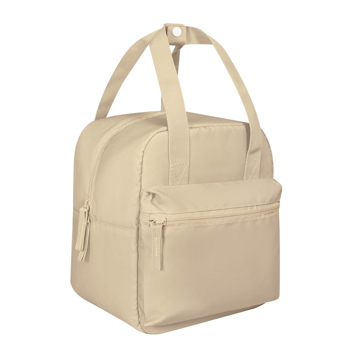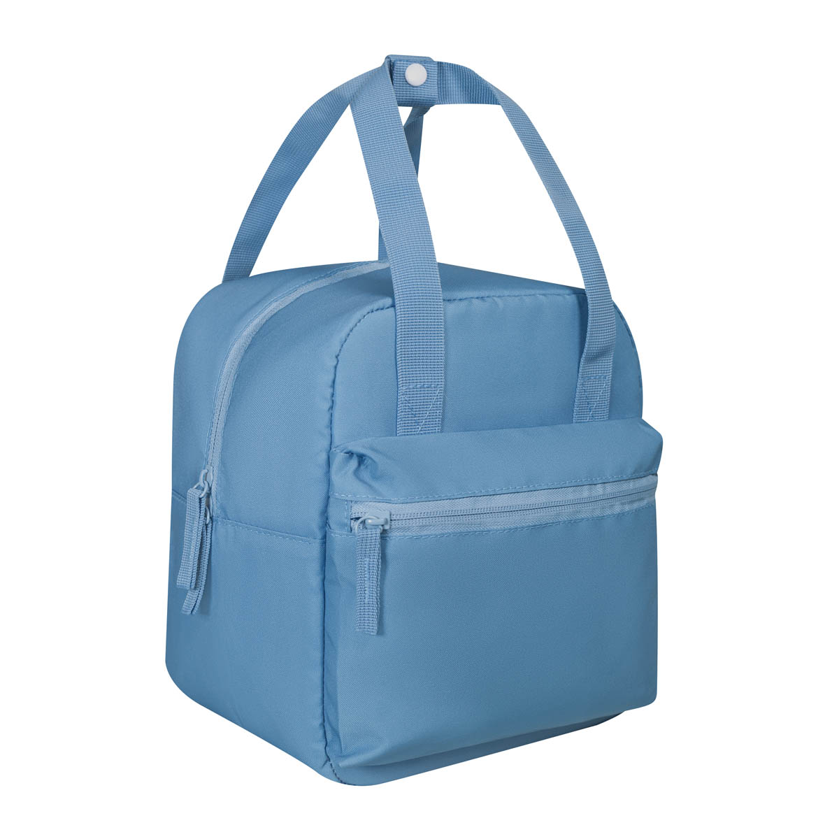 Lonchera fabricada en poliester resistente y duradero, cuenta con un forro plastificado que facilita su limpieza. El compartimento principal, tiene un cierre y un bolsillo frontal para llevar objetos pequenos como, cubiertos, snacks o utensilios. Sus dos asas superiores facilitan su traslado y se pueden unir con un practico broche para mayor comodidad. Con una capacidad para 9 latas, esta lonchera es ideal para llevar tus comidas y bebidas favoritas de manera segura y organizada.