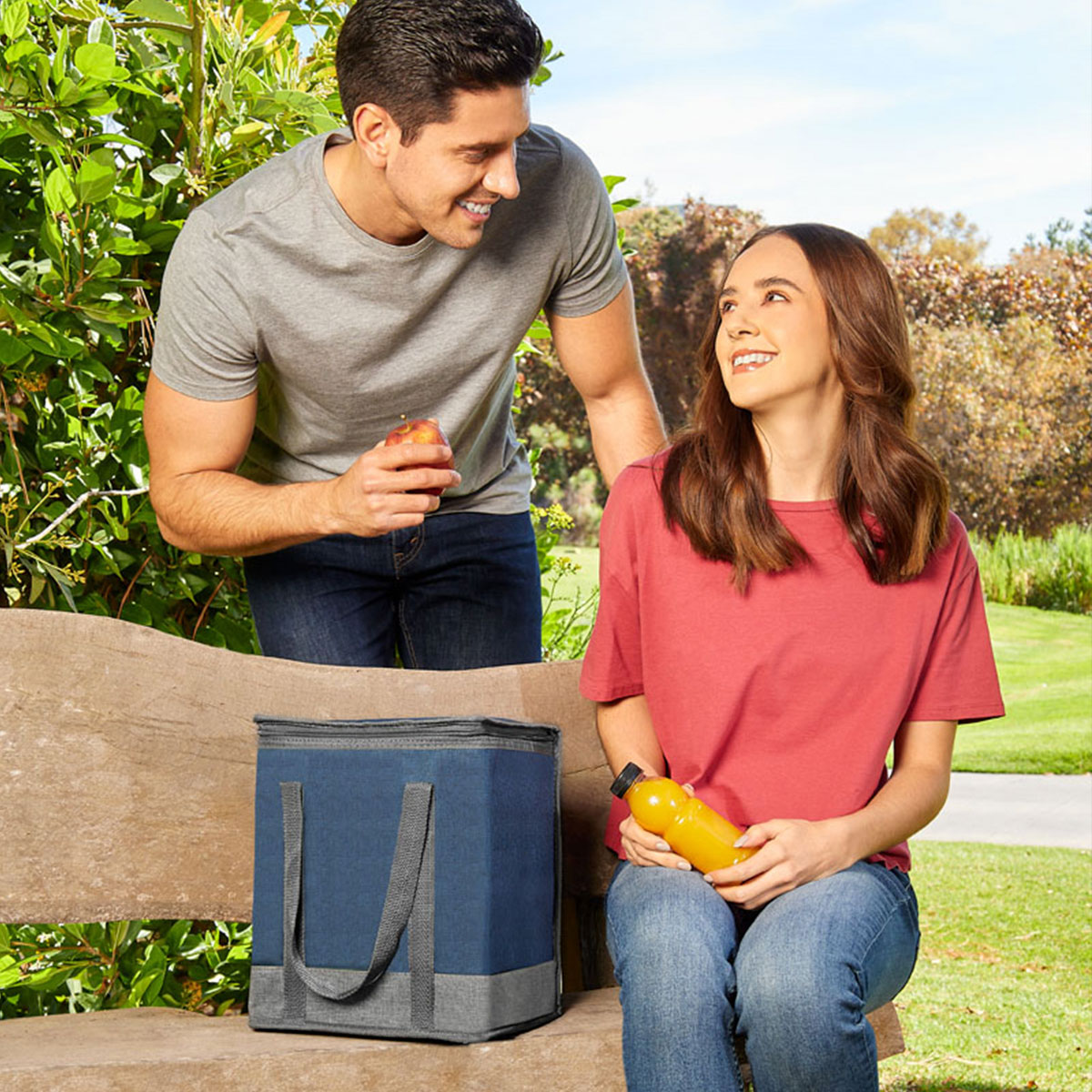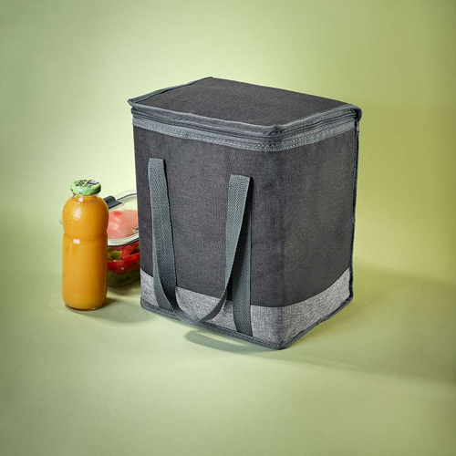 Interior metalizado. Bolsa principal con cierre y 2 asas de agarre superior. Capacidad para 12 latas.