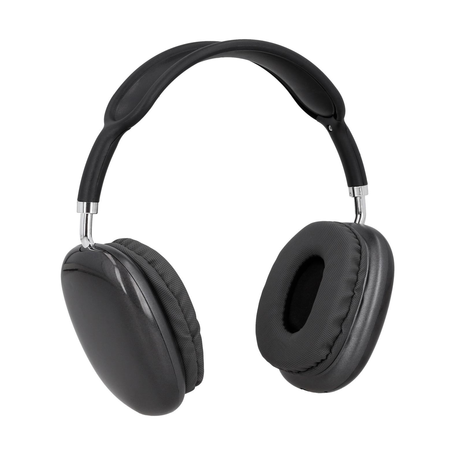 Audífonos bluetooth de plástico con función de manos libres, controles de llamada, volumen, reproducción de audio, botón de encendido y apagado que cuenta con entrada para tarjeta de memoria micro SD y auxiliar. Incluye cable de carga.