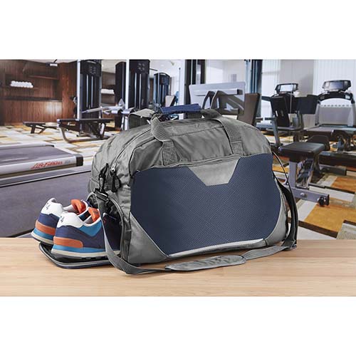 Bolsa principal con cierre, bolsa frontal. Compartimento lateral para zapatos y bolsa lateral. Incluye correa para hombro ajustable con broches de plastico y asas superiores.