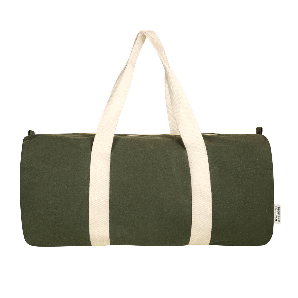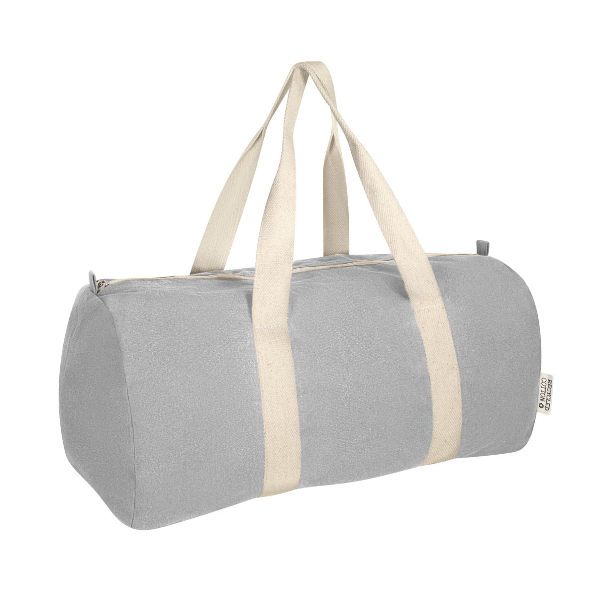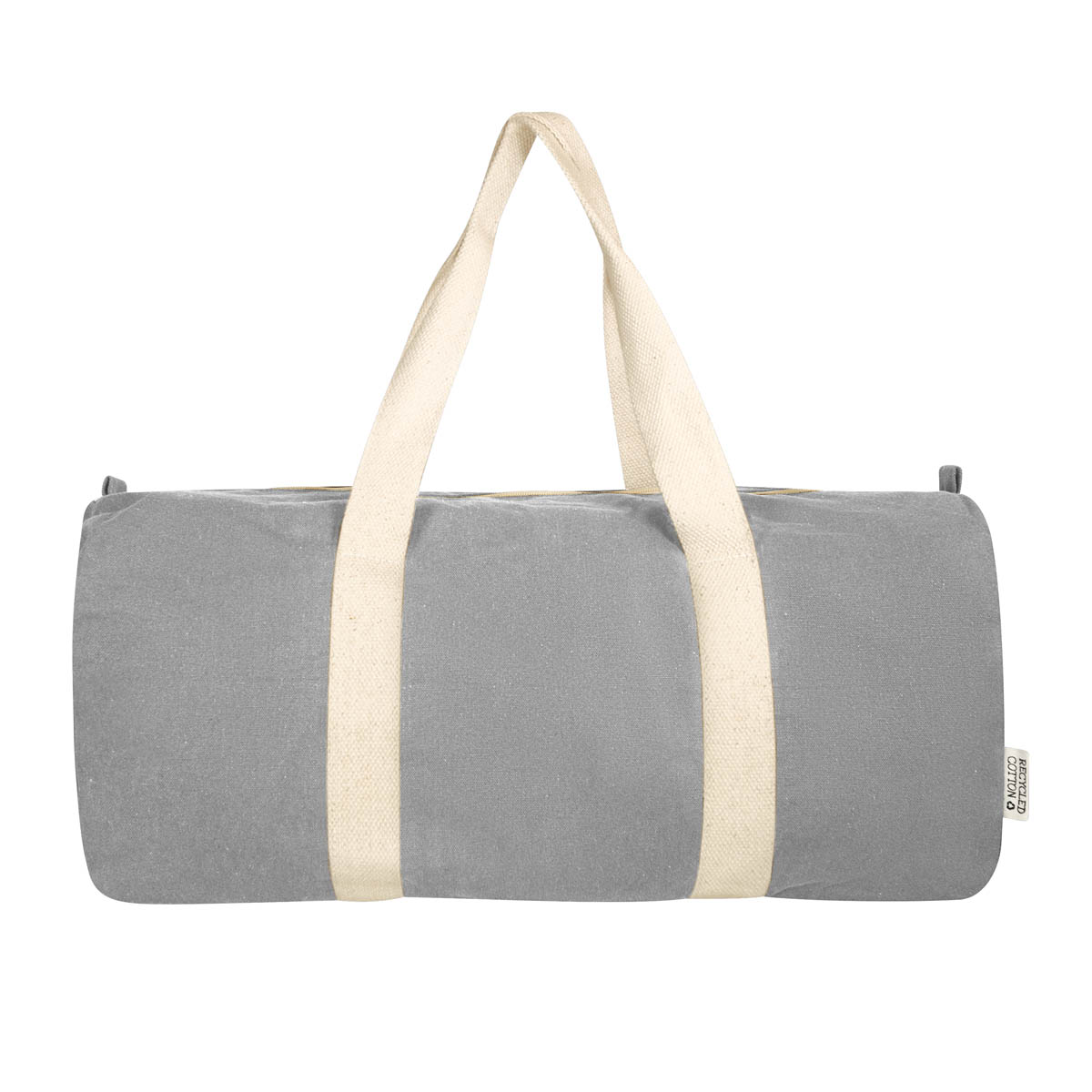 Maleta ecologica fabricada con algodon reciclado. Cuenta con un compartimento principal con cierre y dos asas para hombro.