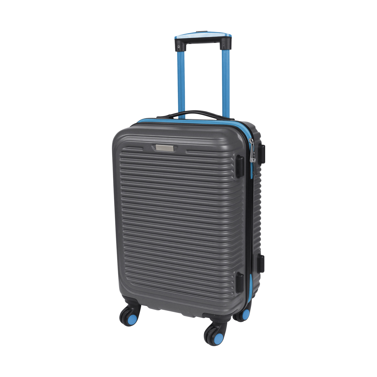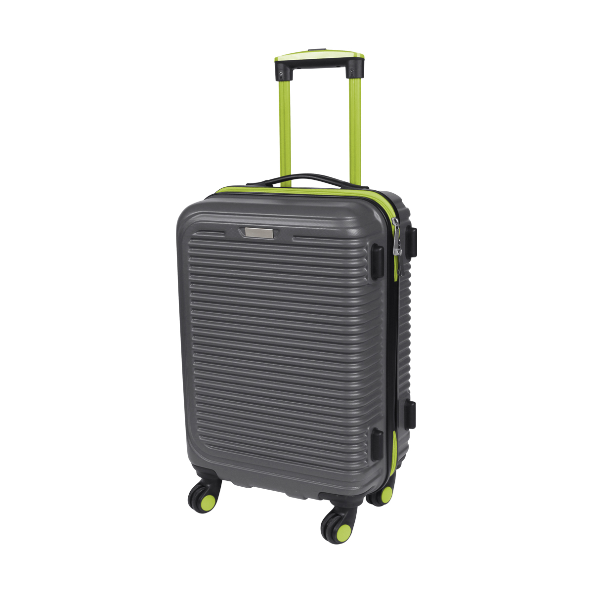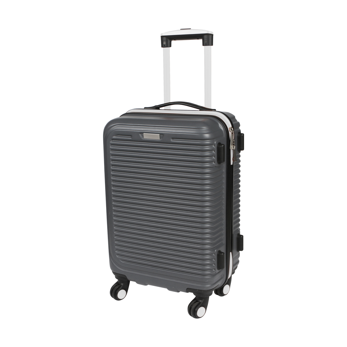 Maleta rígida de viaje tipo carry on color gris, con ruedas y cierre en diferentes colores fabricada en ABS con interiores en poliéster, con mango retráctil, chapa de seguridad, placa metálica, doble compartimento interior con cierre y tensor para ropa. Capacidad de carga de 10 kg.