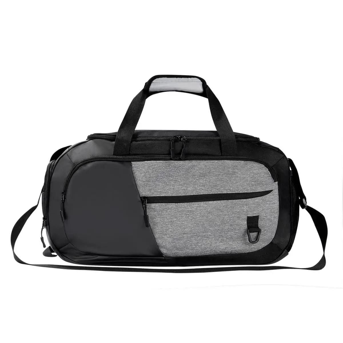 Maleta deportiva con bolsa principal y frontal con cierre que combina funcionalidad y estilo en un solo producto. Incluye accesorio para colgar llaves, compartimento para separar tu calzado, bolsillo lateral de malla, asas de mano y correa para hombro ajustable.
