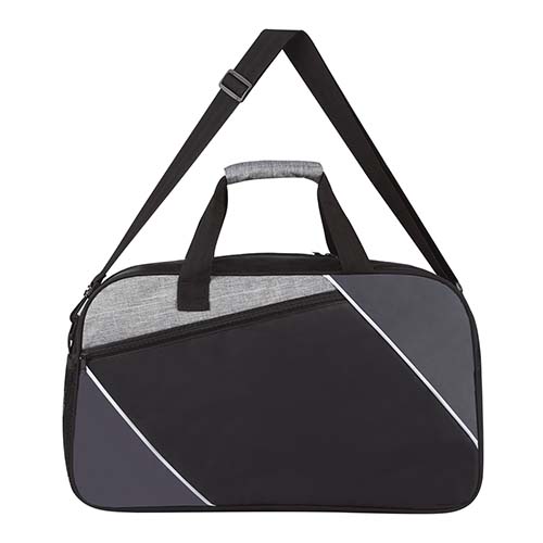 Bolsa principal con cierre, bolsa frontal y un compartimento lateral de red. Incluye asas y correa para hombro ajustable.