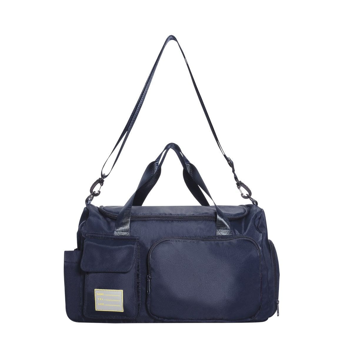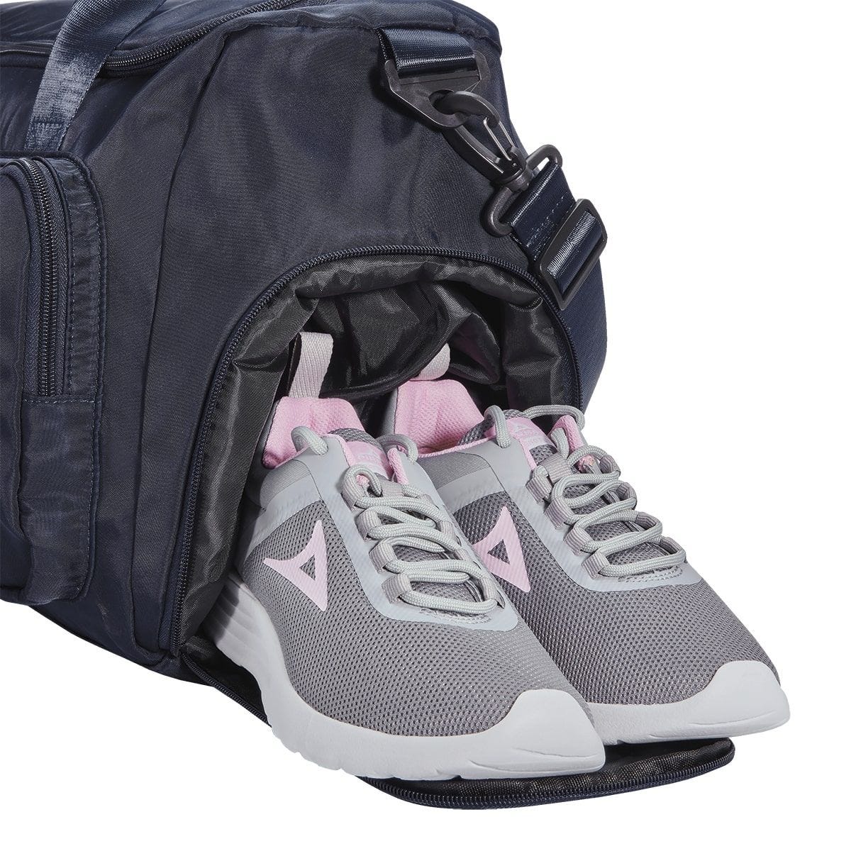 Maleta deportiva con bolsa principal con cierre y bolsa interna resistente al agua. Incluye compartimento lateral con cierre para guardar su calzado. Bolsa con cierre al frente, bolsillo con cerrado de velcro e identificador de silicon para su facil localizacion. Para mayor comodidad cuenta con 2 asas de transporte superior, correa ajustable y removible para hombro y aditamento especial trasero para colocar en trolley.