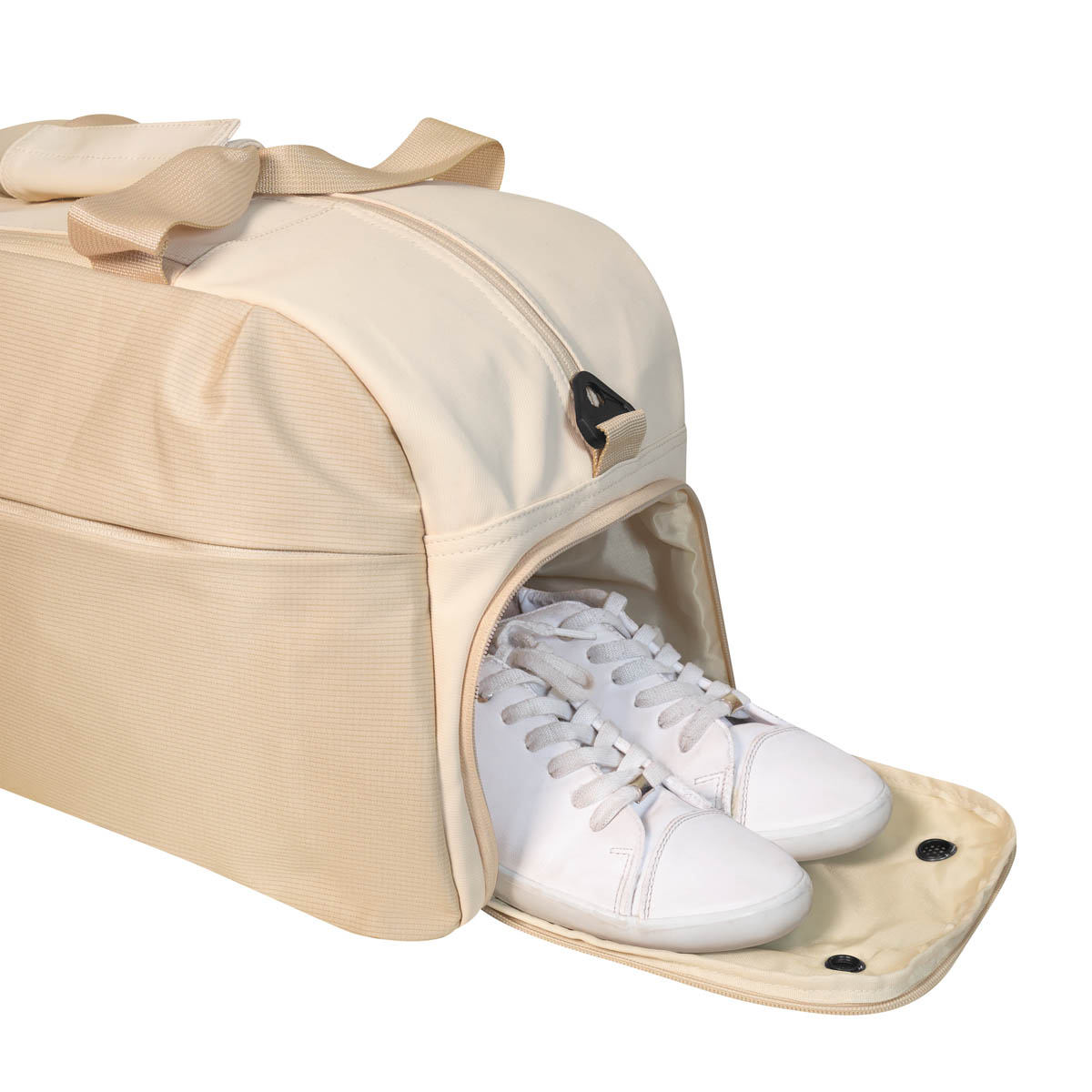 Maleta deportiva. El compartimento principal cuenta con cierre y ofrece un amplio espacio para organizar tus articulos deportivos. Ademas, tambien cuenta con un bolsillo frontal para los articulos esenciales y una practica zapatera para transportar el calzad, sin comprometer la limpieza de los demas articulos personales. La base esta equipada con un material antideslizante y resistente. Incluye una asa ajustable, removible y ergonomica para un comodo agarre en el hombro.