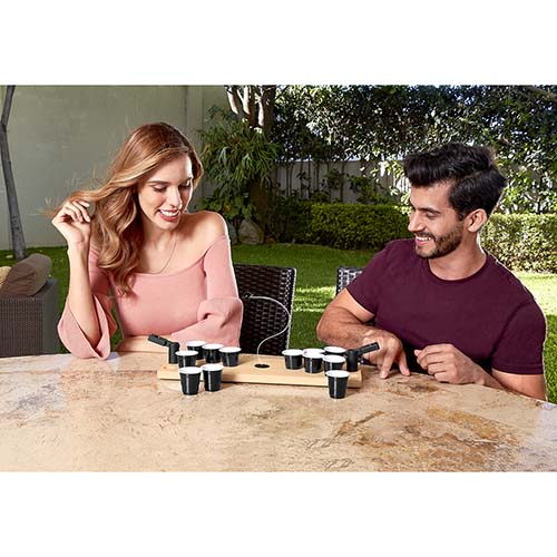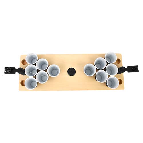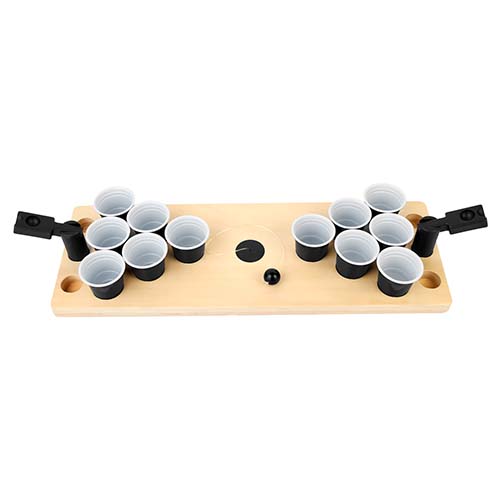 Juego mini beerpong. Incluye 12 vasos de plastico rigido y sistema de catapultas con pelota. La madera es un producto natural el cual puede presentar variaciones en tonalidades y vetas.