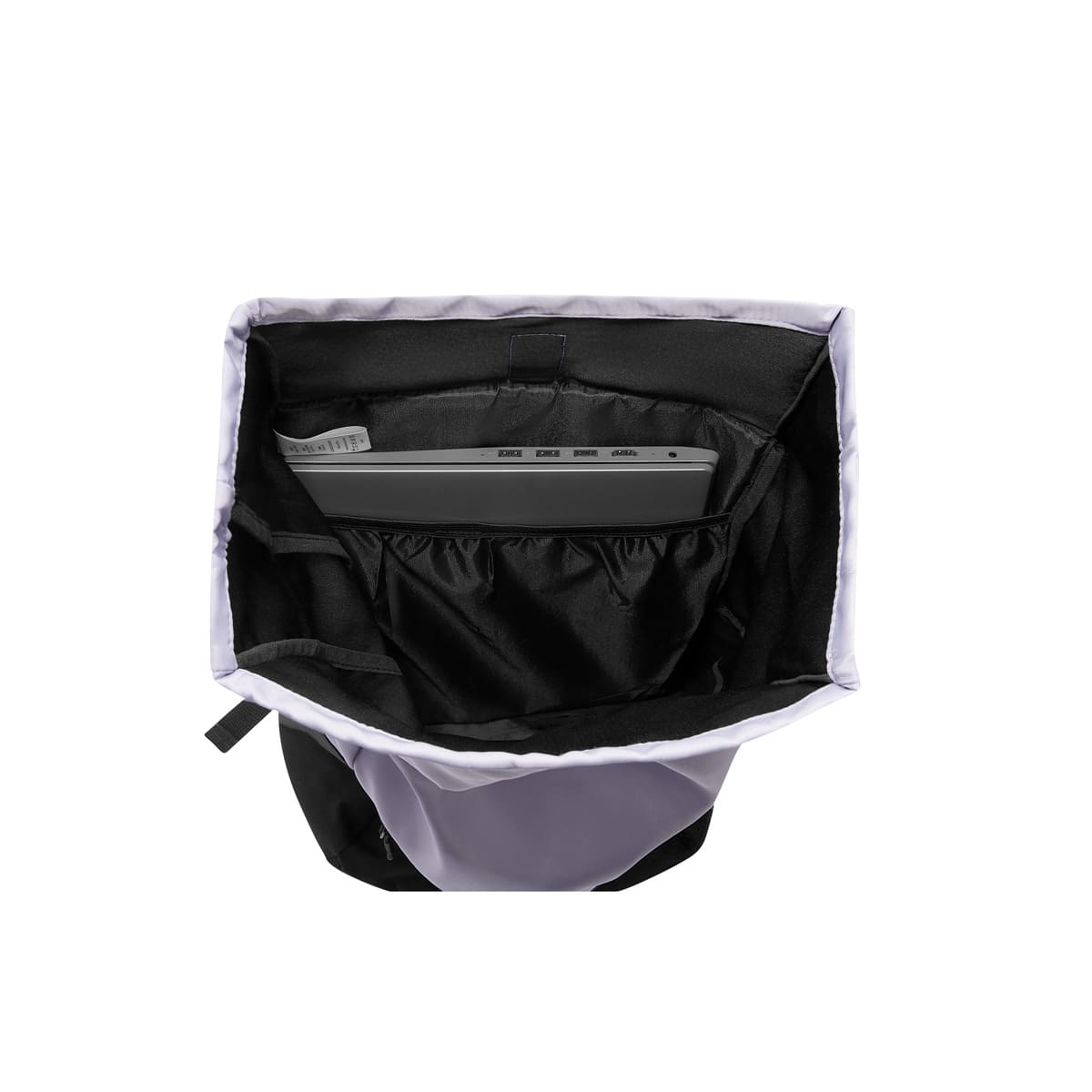 Mochila bitono con bolsa principal con cerrado de broche. Interior con compartimento para laptop de 16". Incluye bolsillo frontal con cierre y bolsillo lateral de malla.
