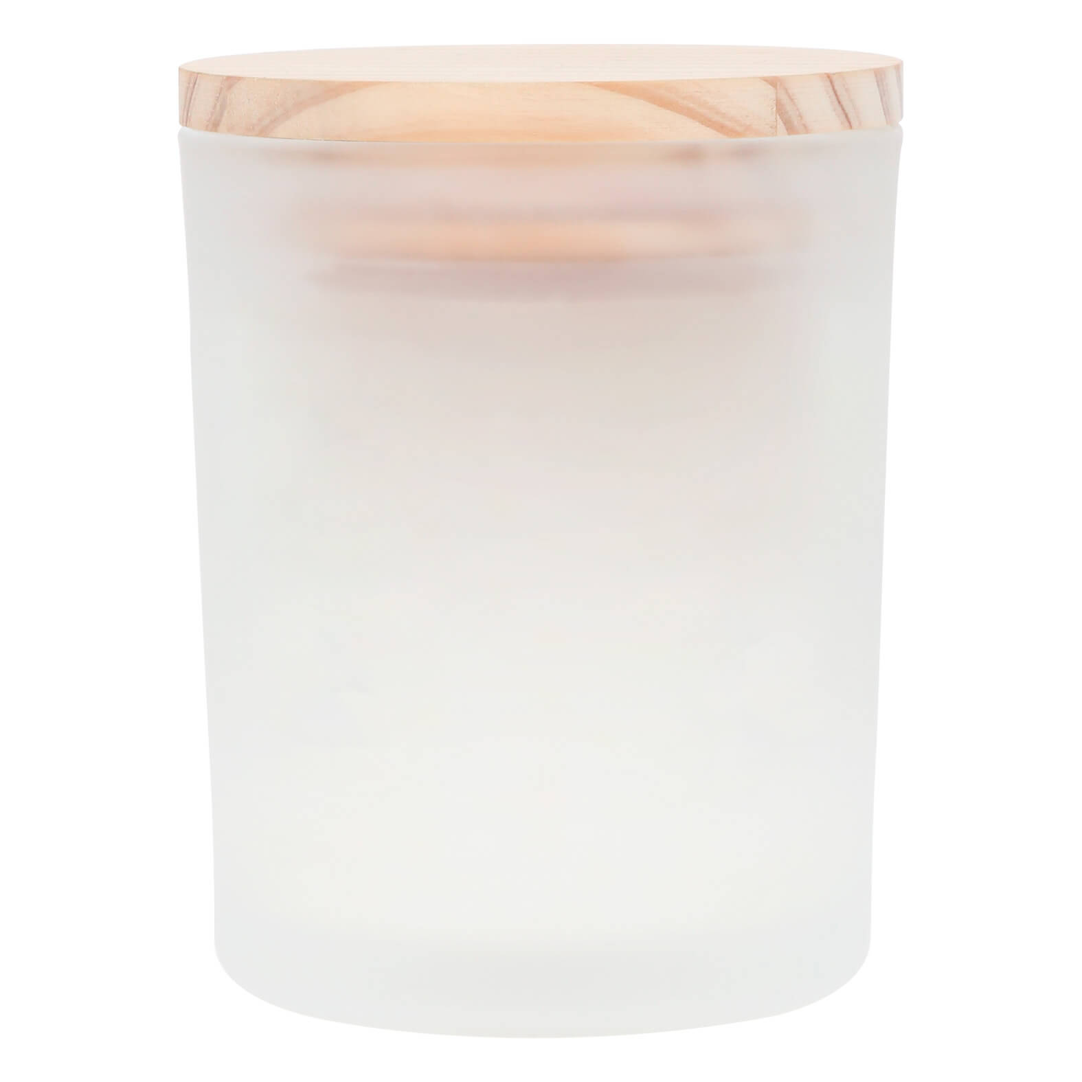 Vela con olor a lavanda con envase de vidrio acabado frost y tapa de madera.