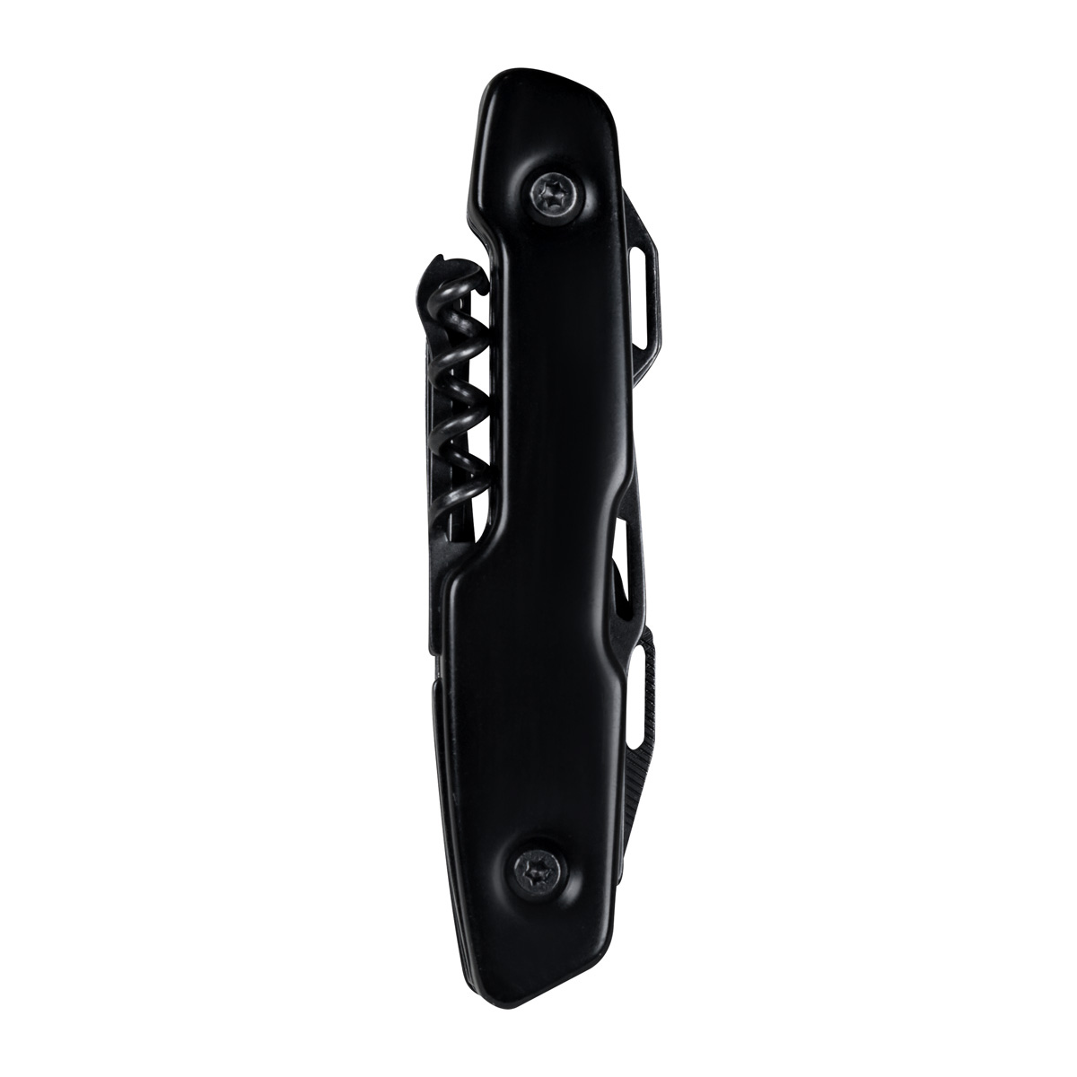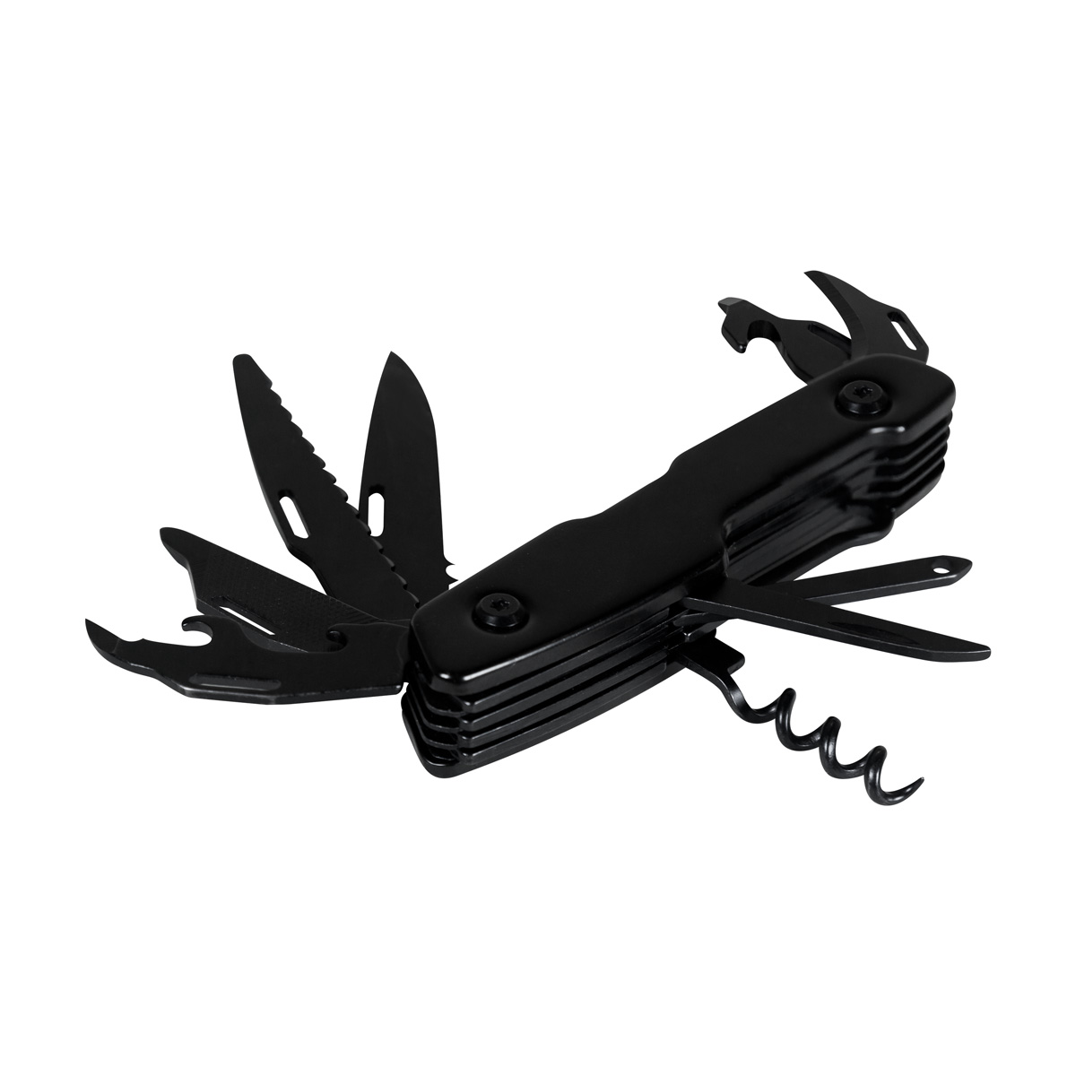 Navaja metalica con 12 funciones. Incluye 1 navaja, 1 destornillador, 1 destornillador plano, 1 destornillador pequeno, 1 abrelatas, 1 lima, 1 sacacorchos, 1 guia de hilo, 1 punzon para cuero, 1 cortador de cajas, 1 destapador y 1 cuchilla pequena. Incluye caja individual.