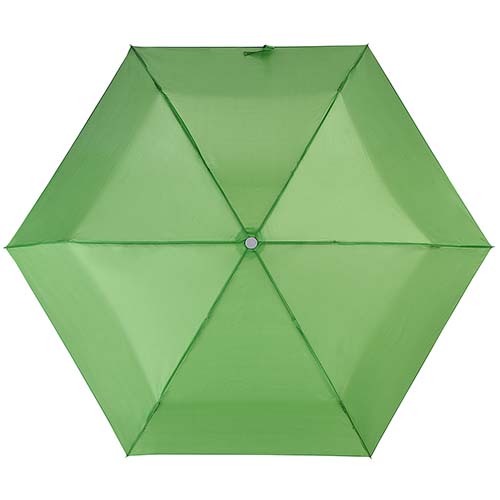 Manual. 6 Paneles, paraguas de bolsillo con mango de plastico. Incluye funda.